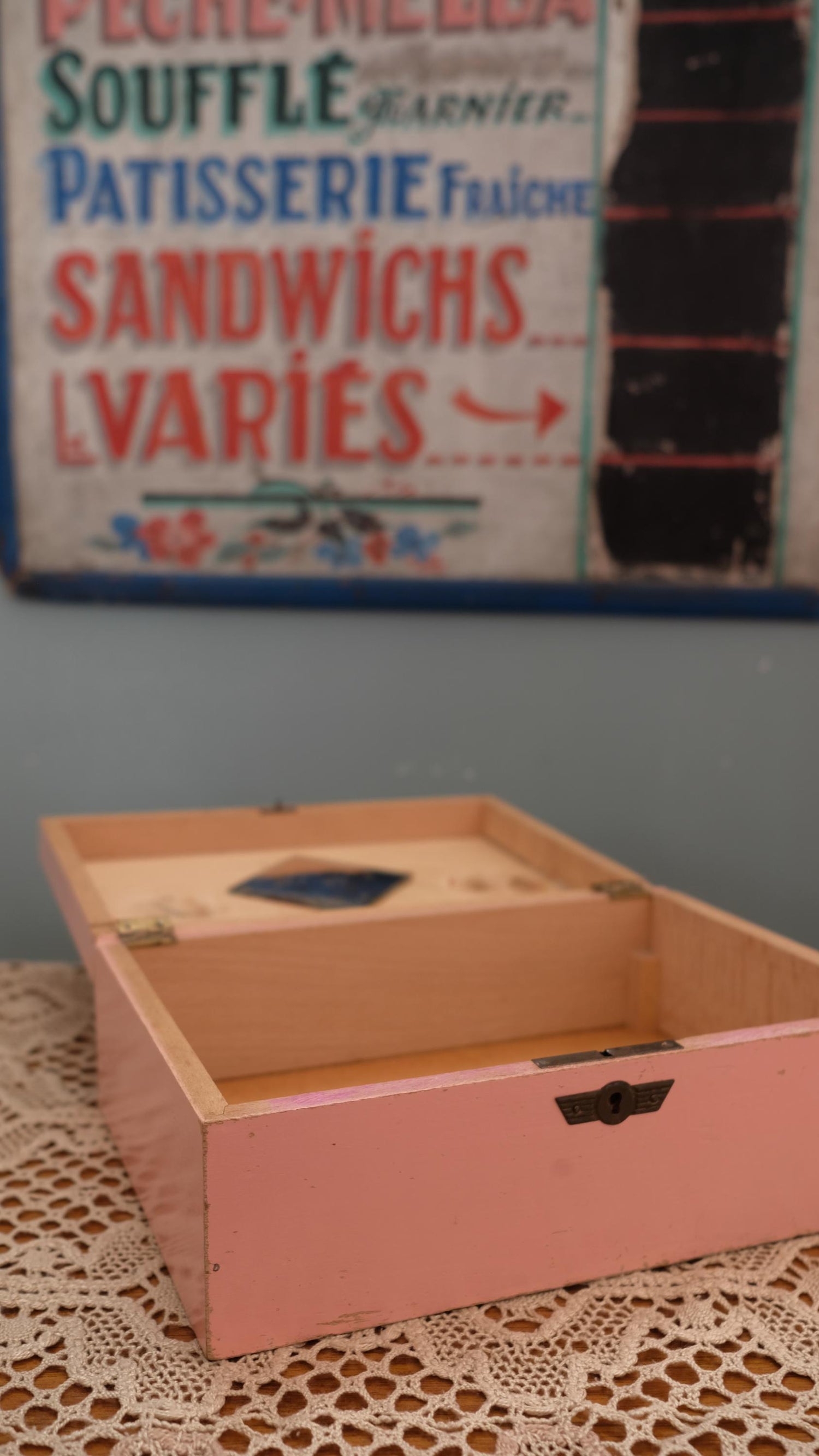 Boîte en bois peint vintage en bon état. Elle mesure 17x24.5x9 cm
