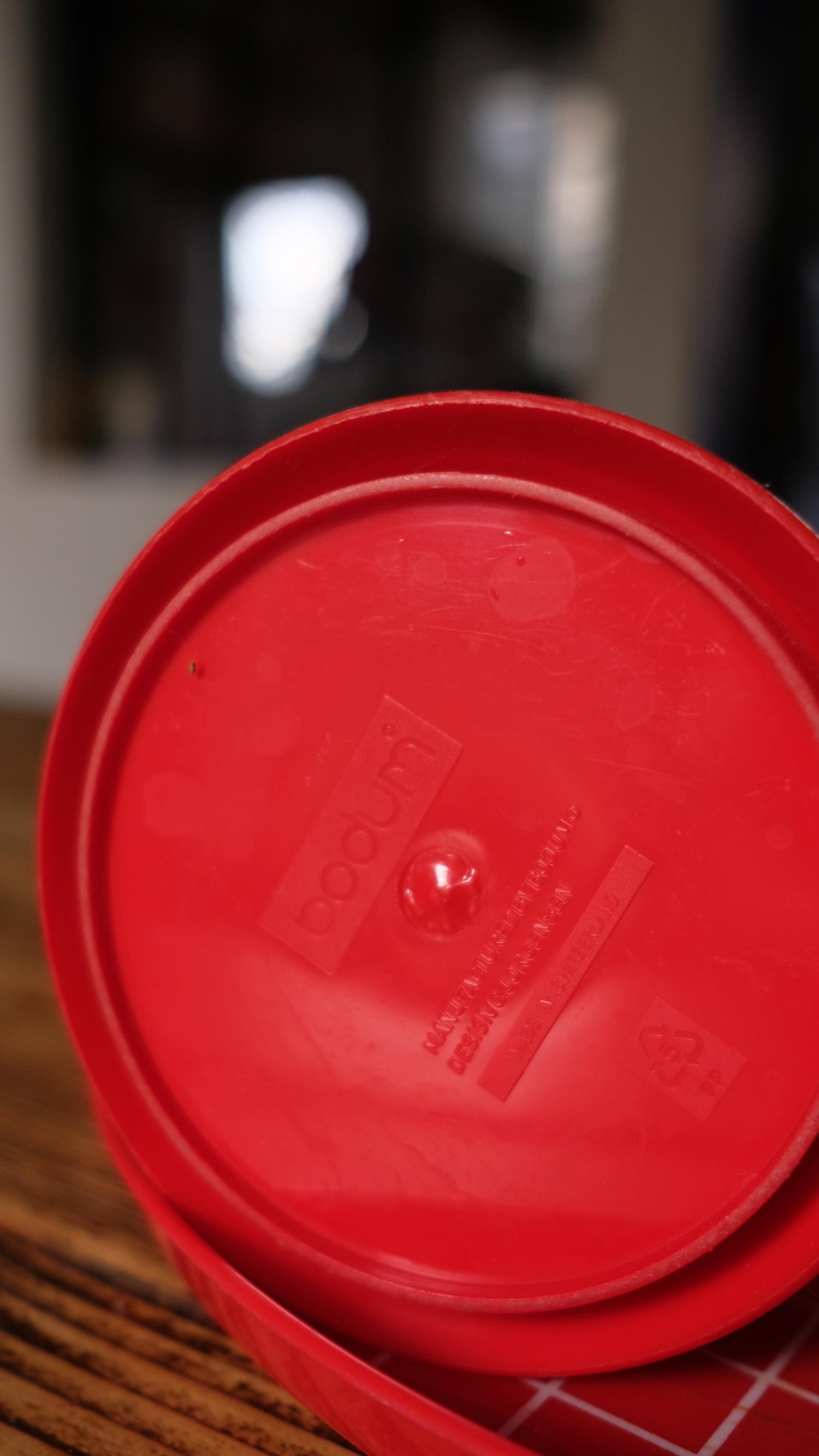 A noter quelques grain de café moulus entre la paroi en verre et celle en plastique, mais ne se voient pas de l'extérieur.
