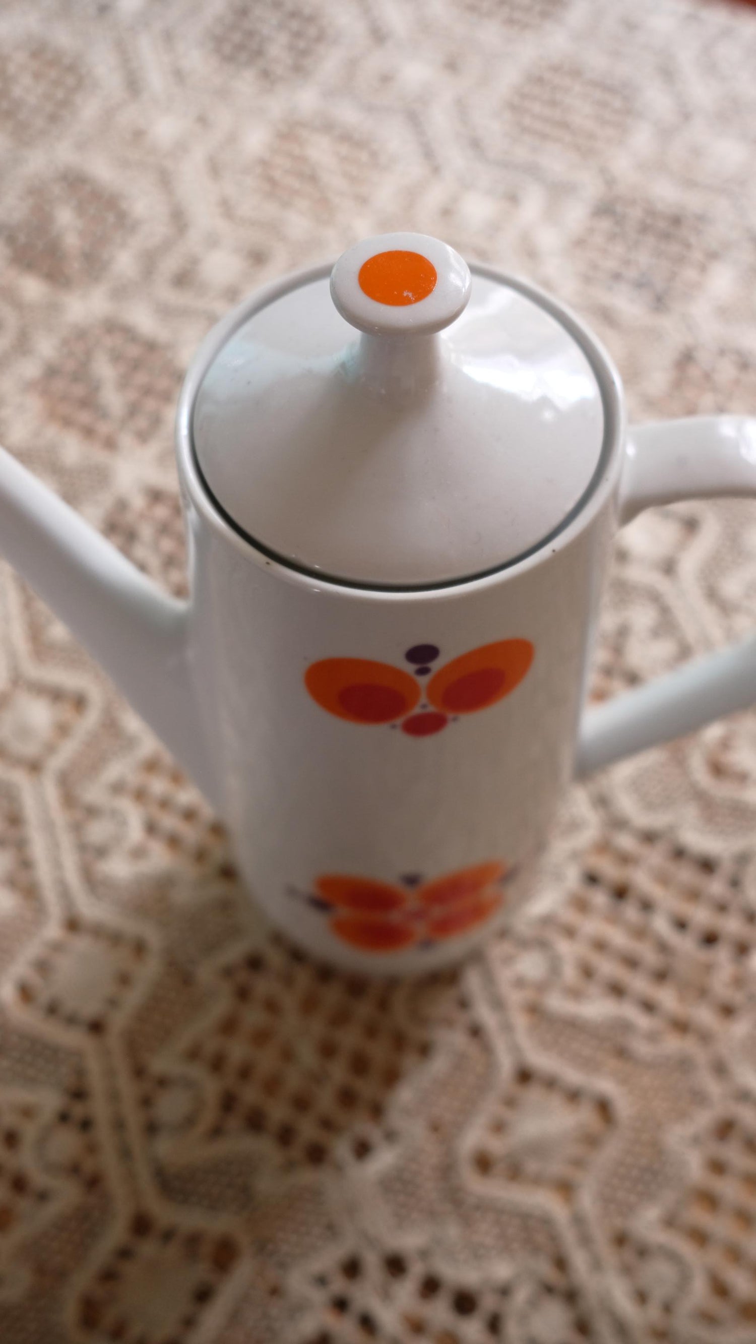 Cafetière Colditz Porcelan vintage style années 60 fabriquée en Allemagne de l'est en très bon état. Petit défaut d'émaillage à noter (visible en photo).