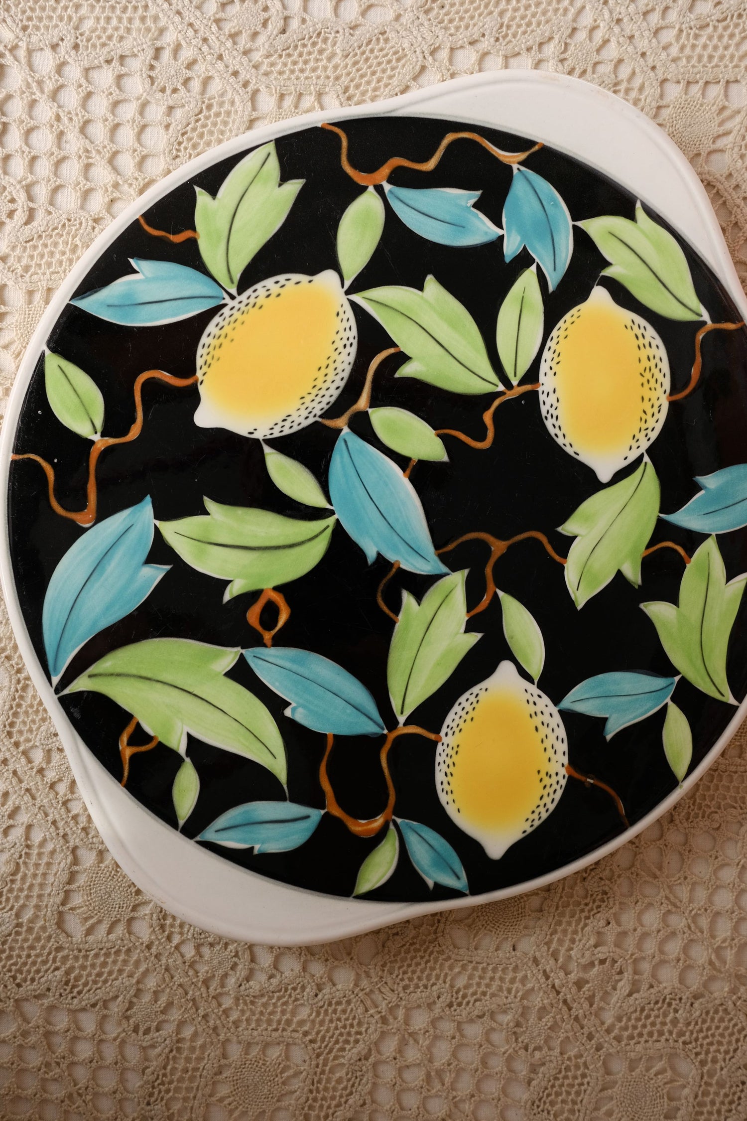 Grand plat à Gateau Villeroy et Boch motif citrons qu'on se croirait presque sur la côte amalfitaine. Il mesure 38cm de diamètre.