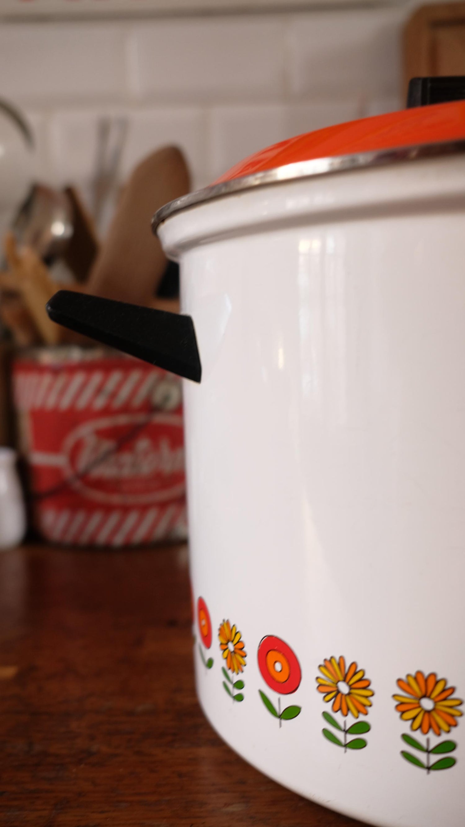 Grande cocotte Siegwerk vintage en bon état mise à part ce coup sur le couvercle.
