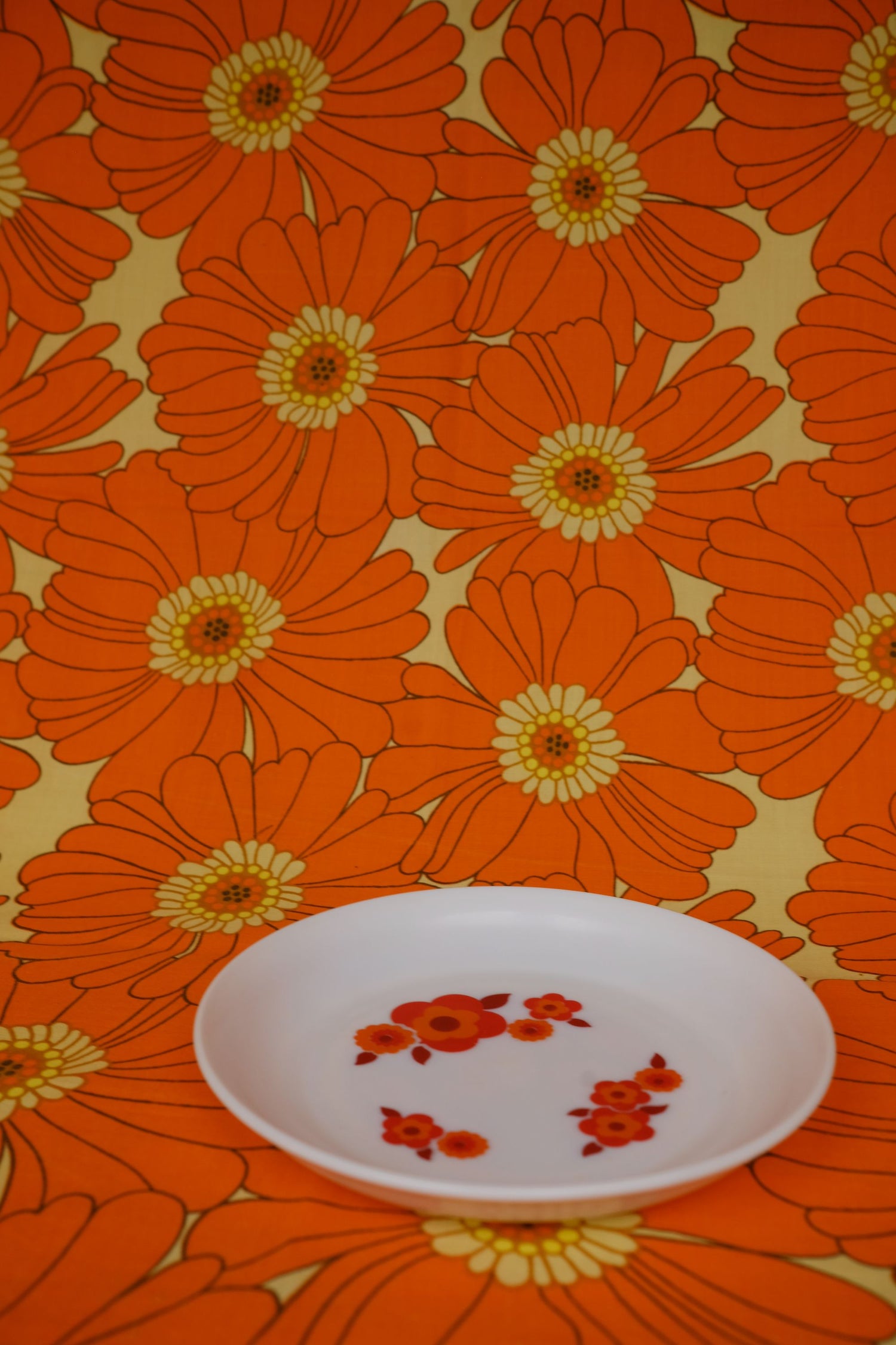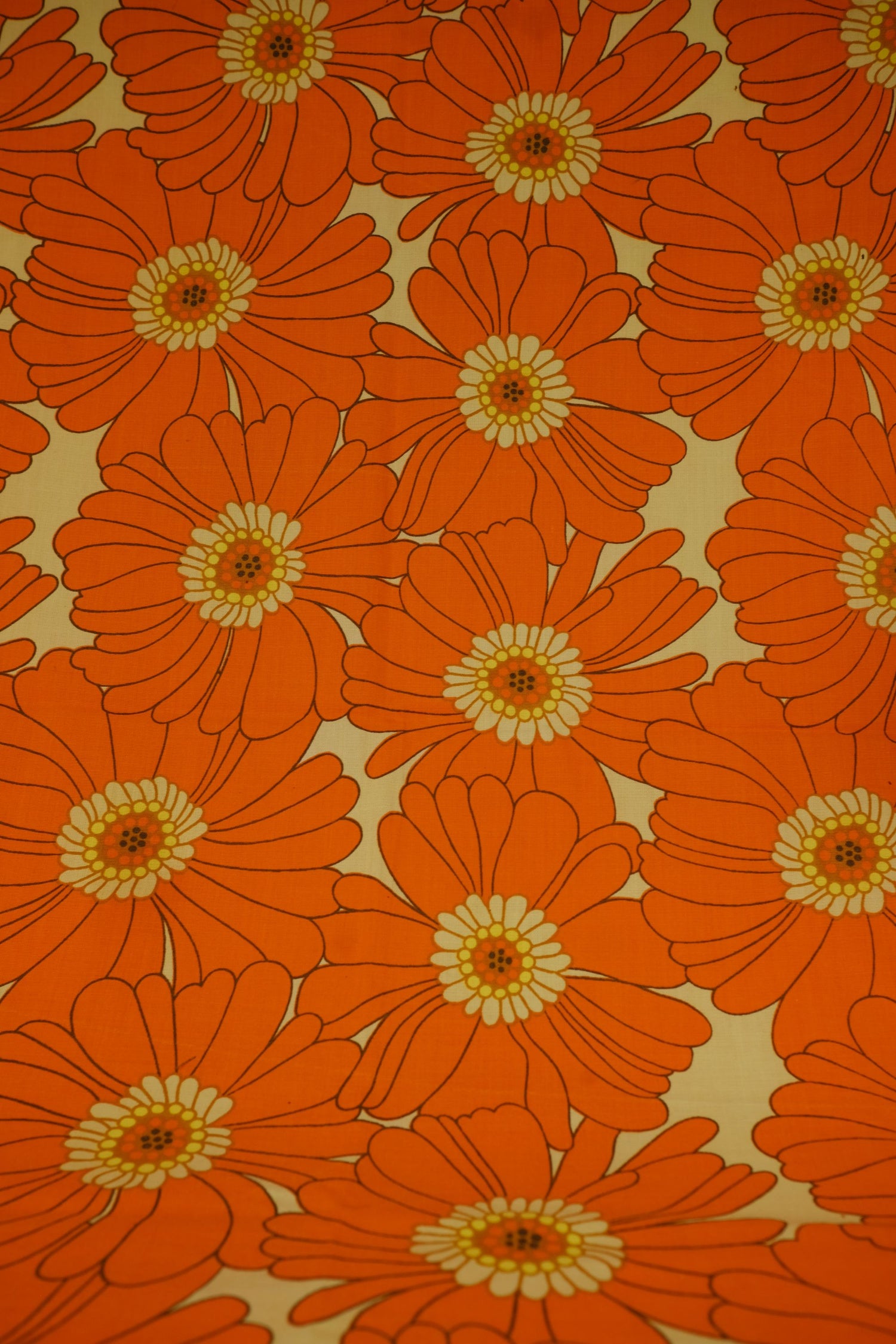 Grande nappe à motif fleurs seventies, elle mesure 230x130 cm.