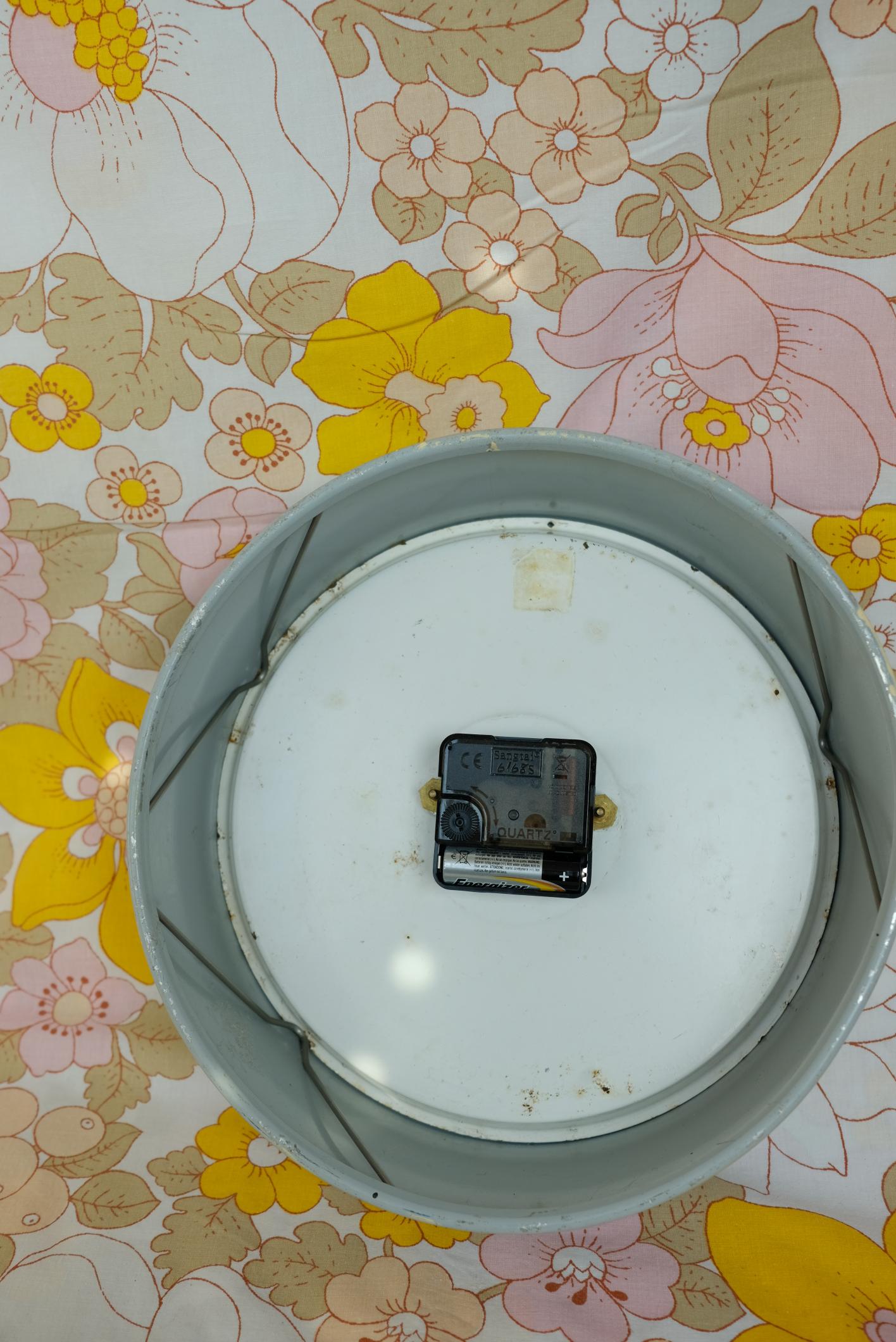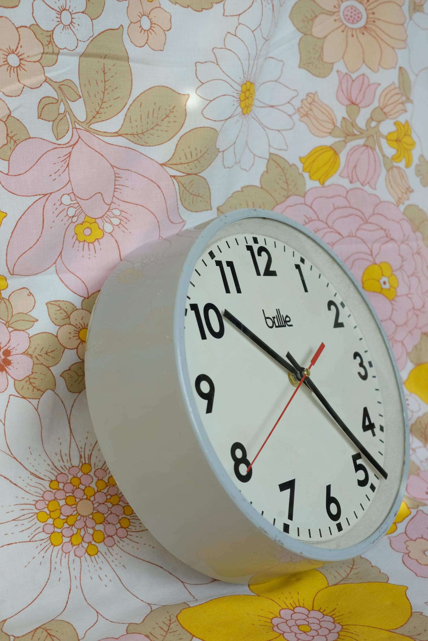 Horloge murale industrielle Brillié, elle est en bon état et mesure 24.5 cm de diamètre.