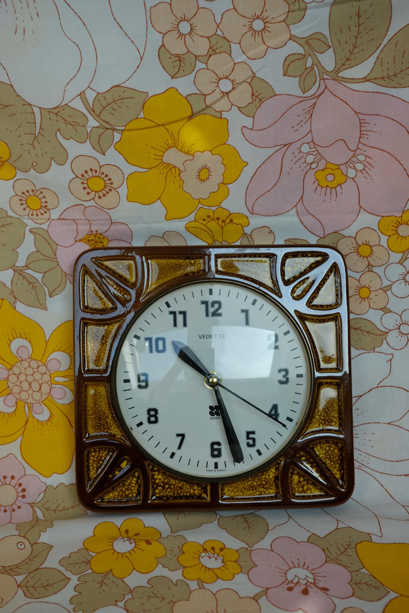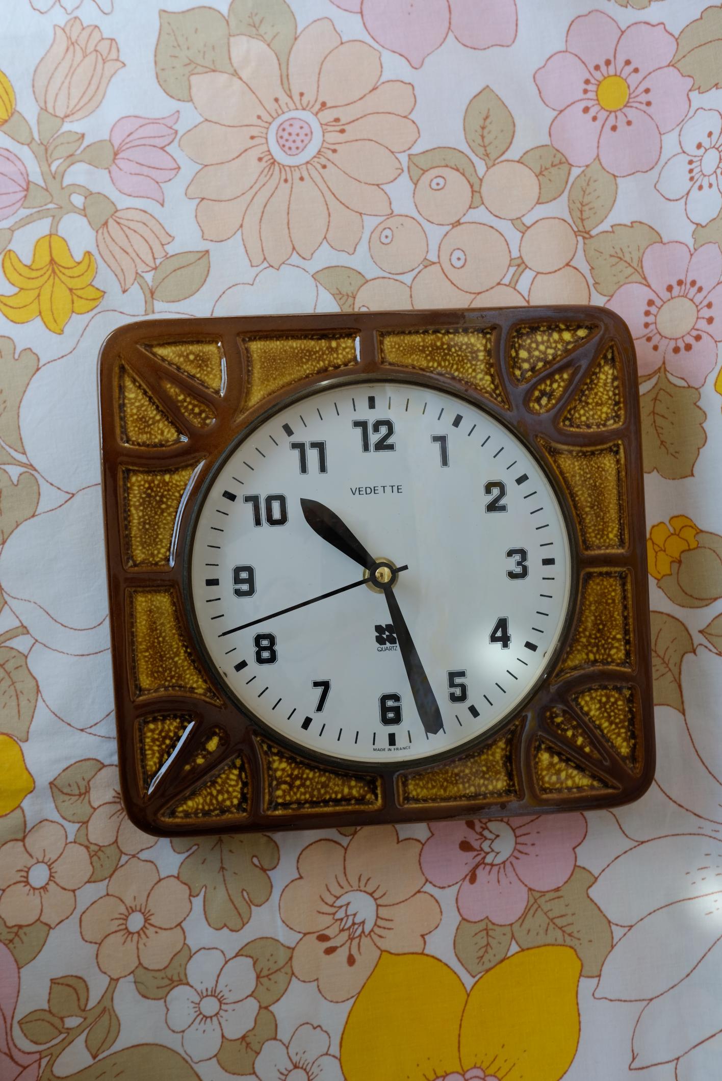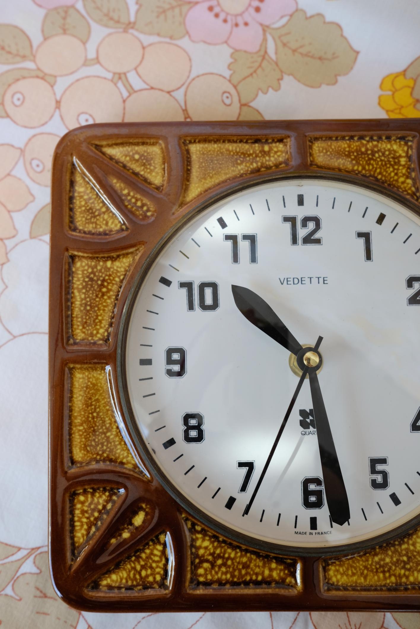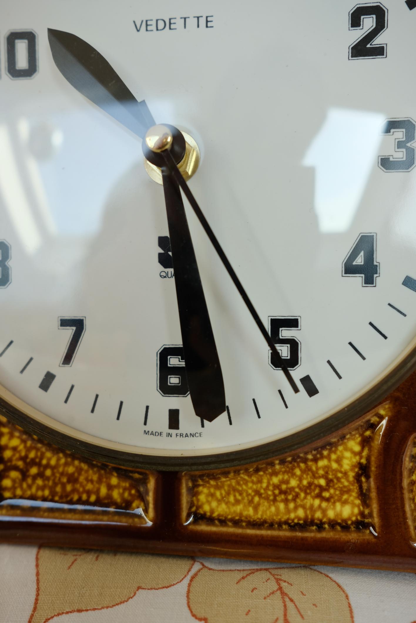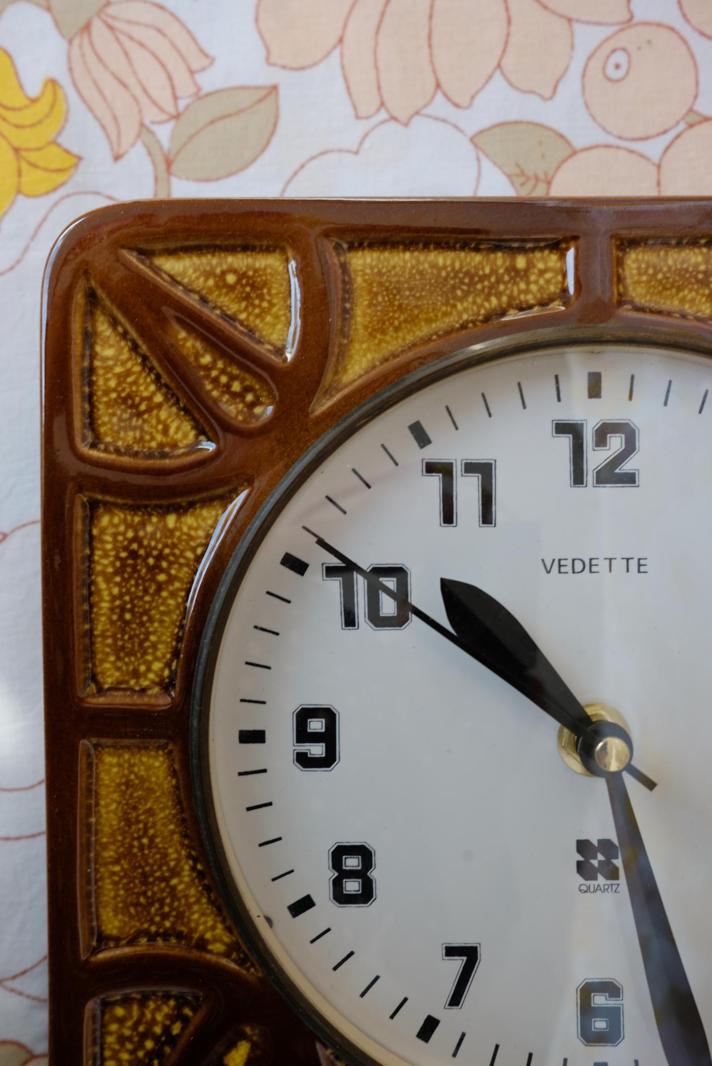 Horloge murale vedette en céramique, made in France, en très bon état.