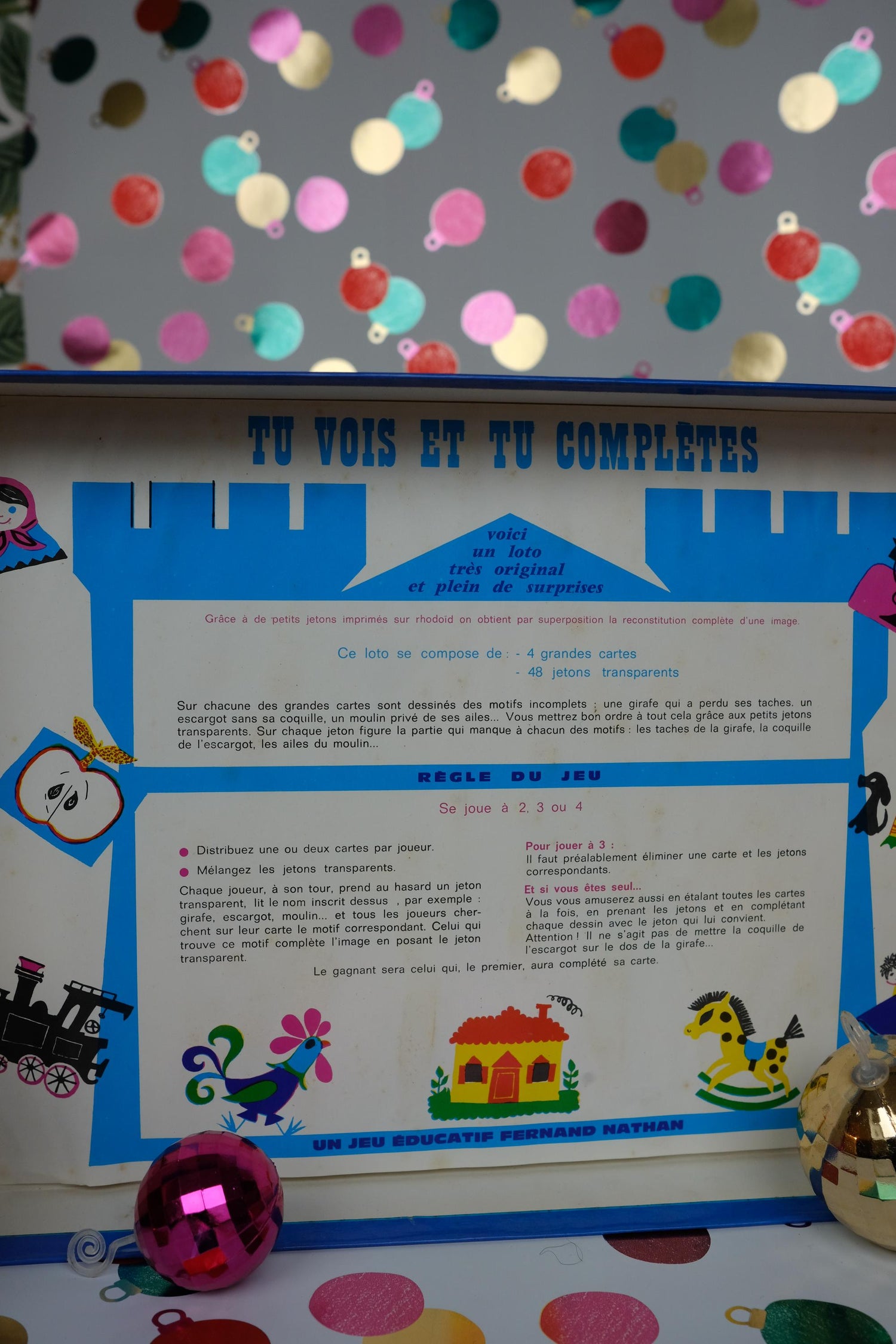 Jeu de loto Nathan "tu vois et tu complètes" complet et en très bon état.