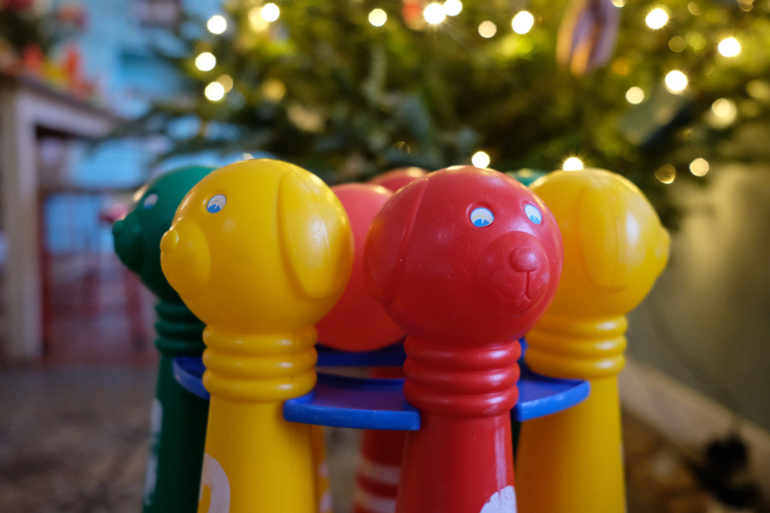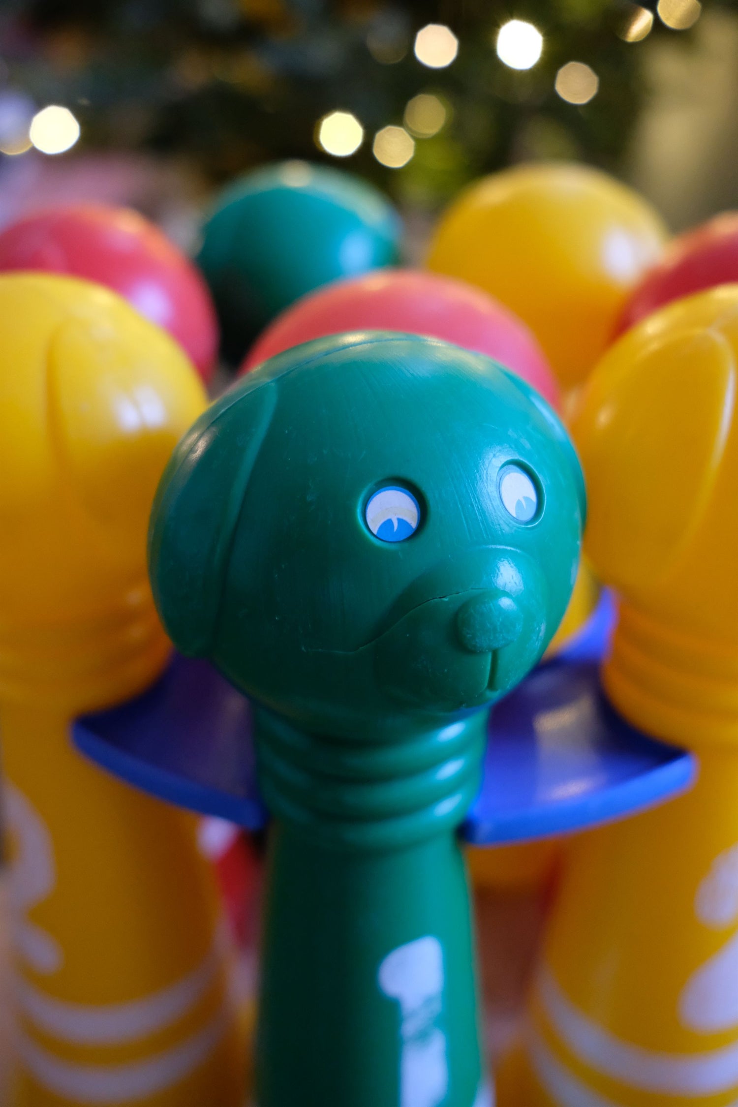 L'expression connue comme un chien dans un jeu de quille littéralement pris au pied de la lettre...