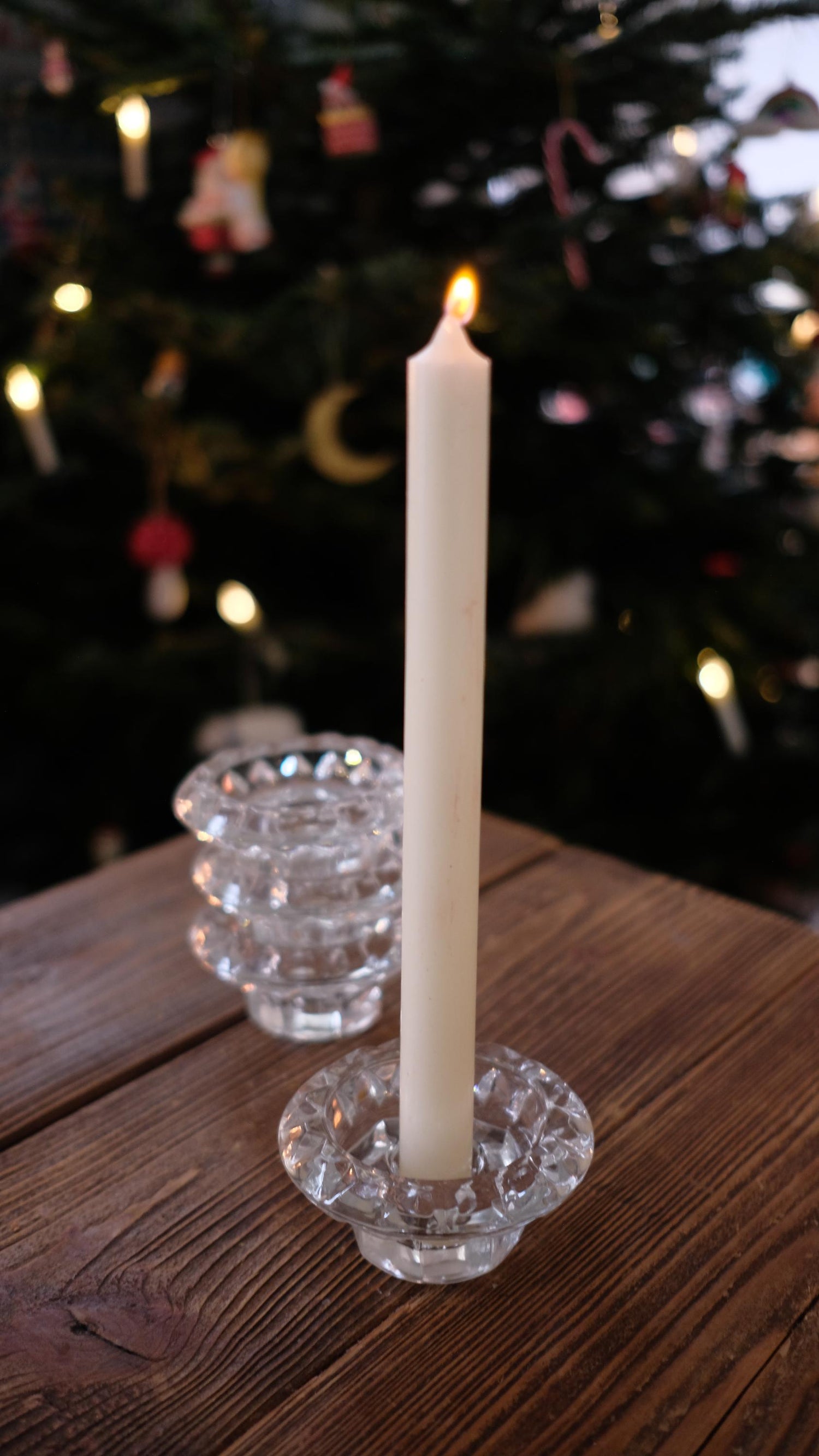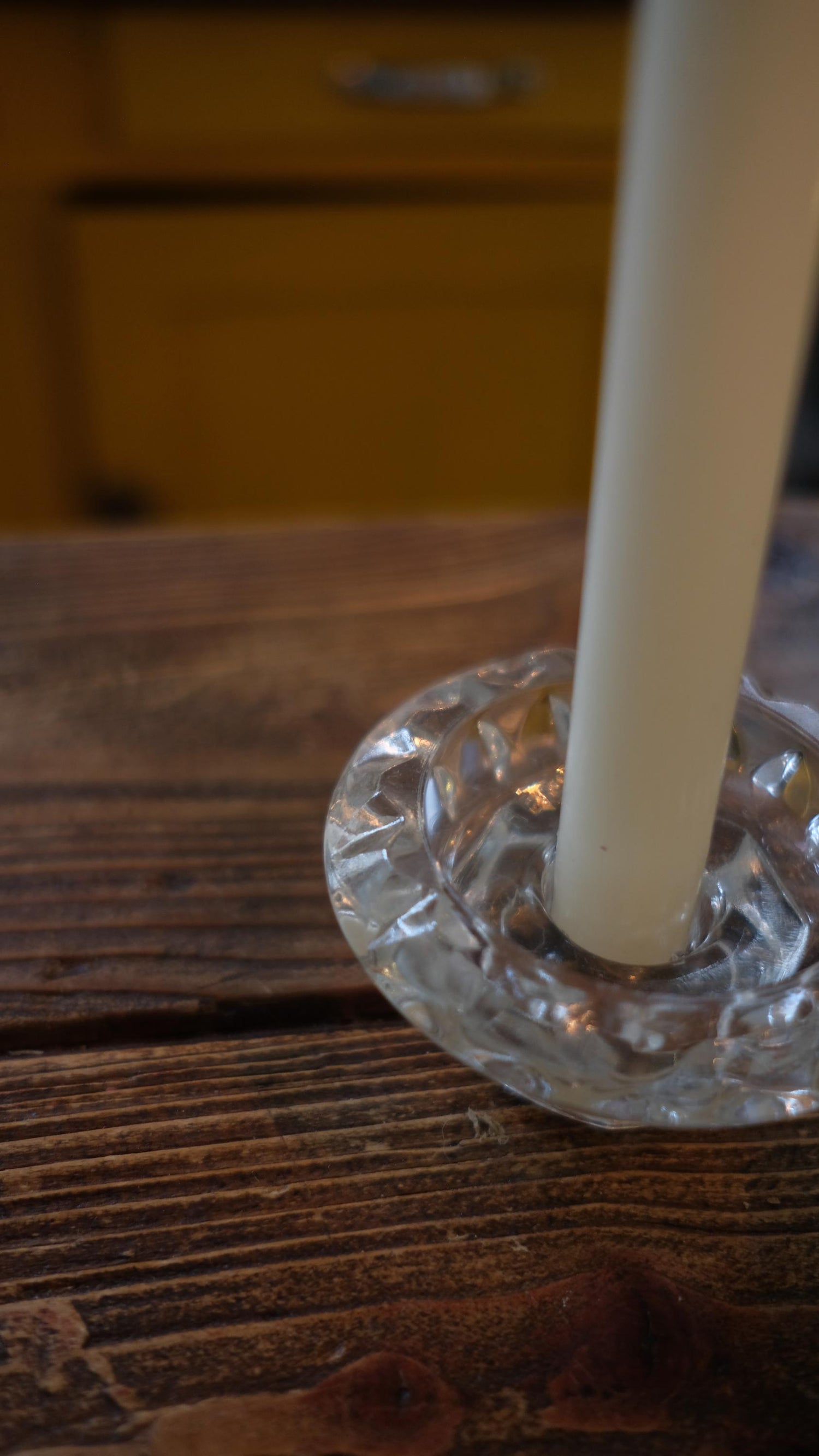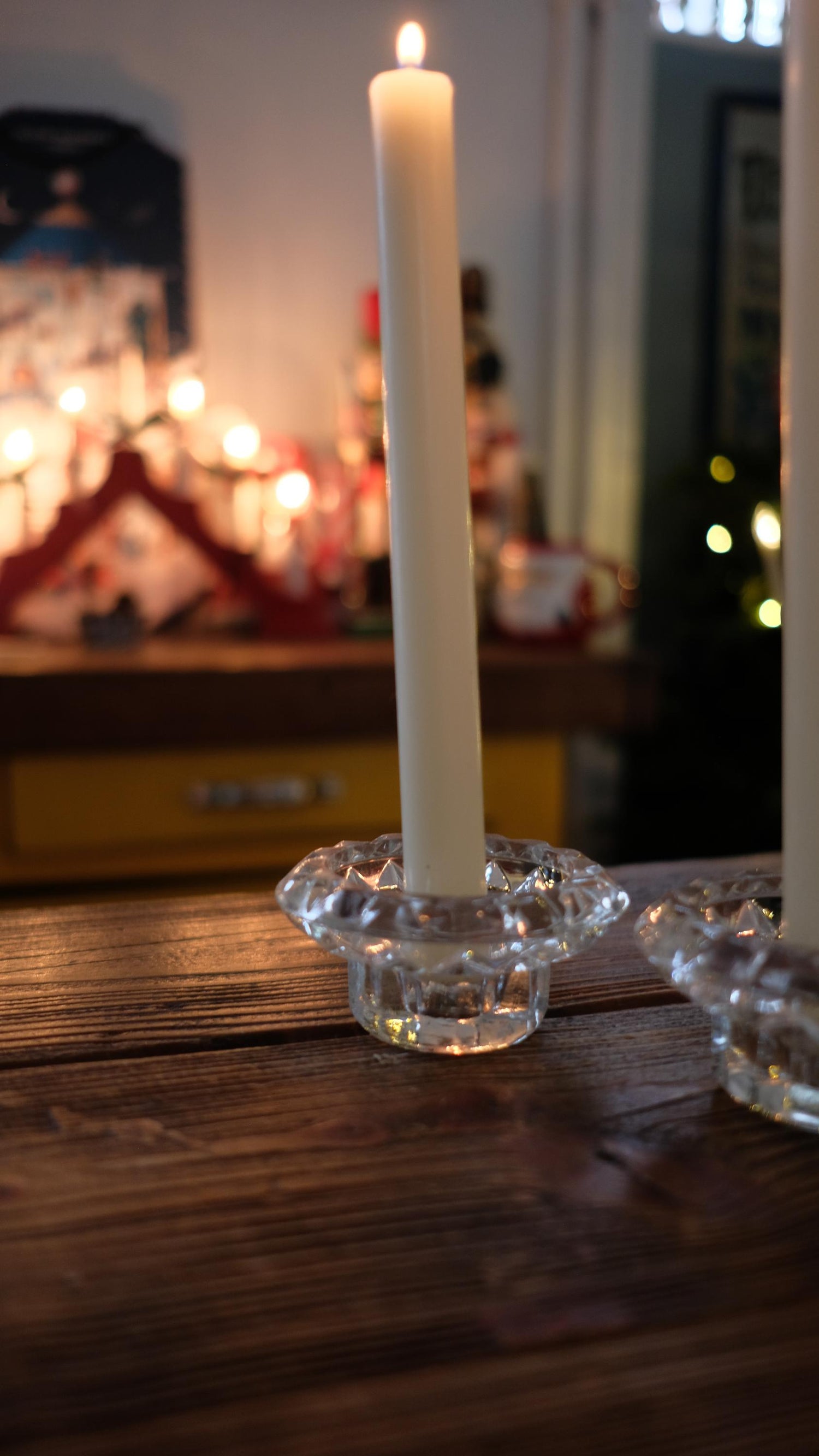 Bougeoirs en verre, ils mesurent 8.5 cm de diamètre et 5 cm de haut.