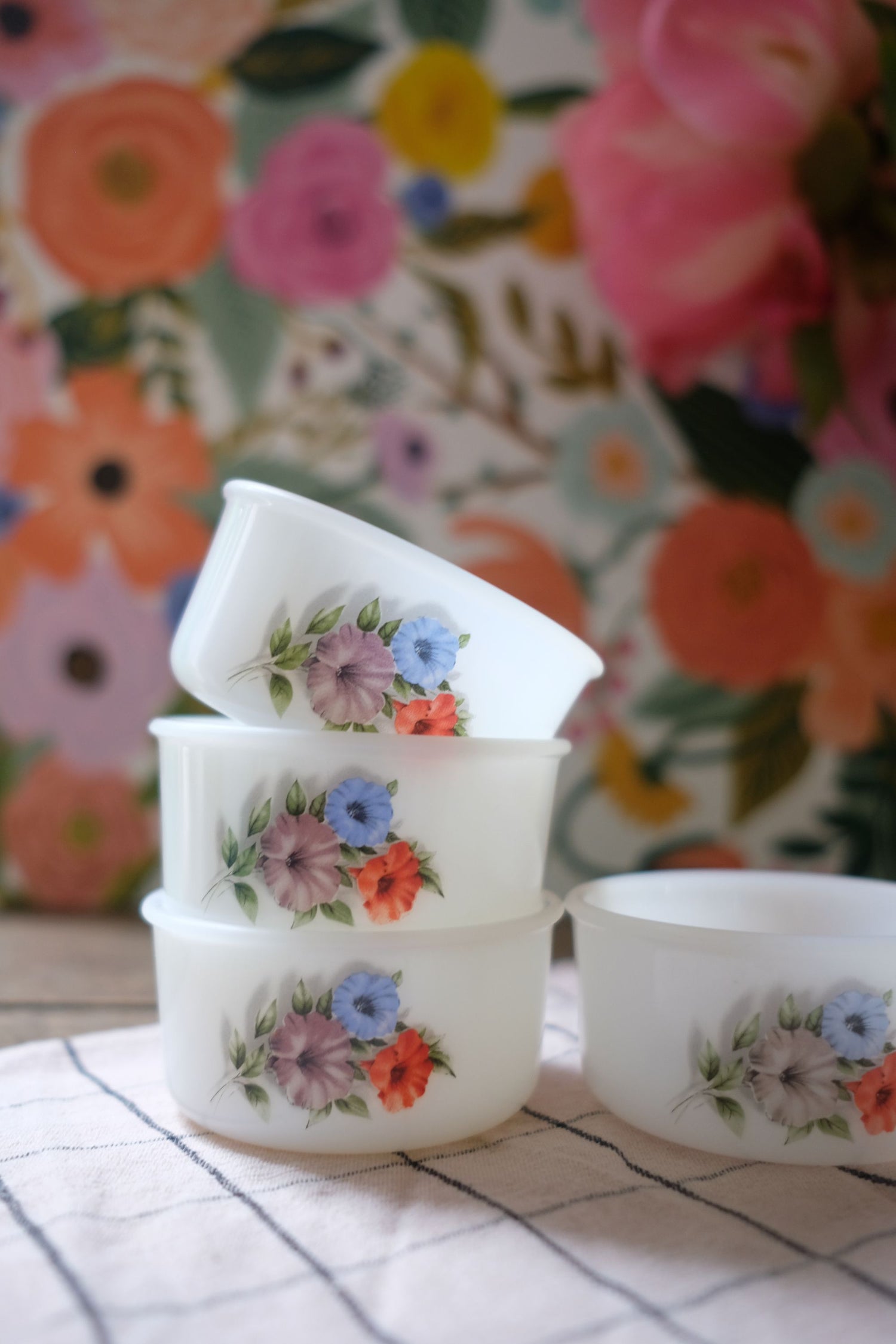 Lot de quatre ramequins en arcopal motifs liserons volubilis en parfait état.