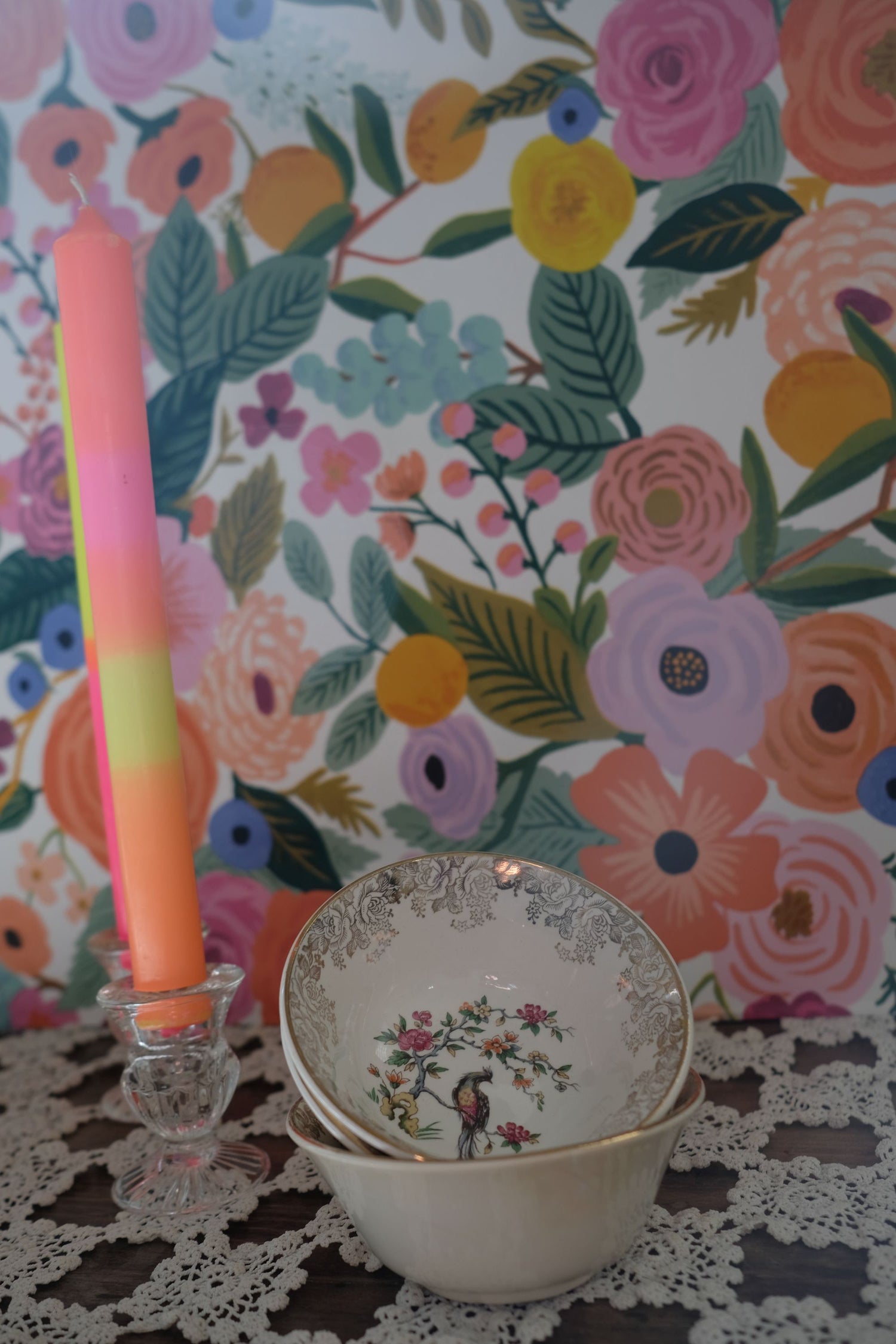 Fières comme un paon avec cette vaisselle fleurie et dorée, un peu kitsch mais c'est ce qu'on veut non?