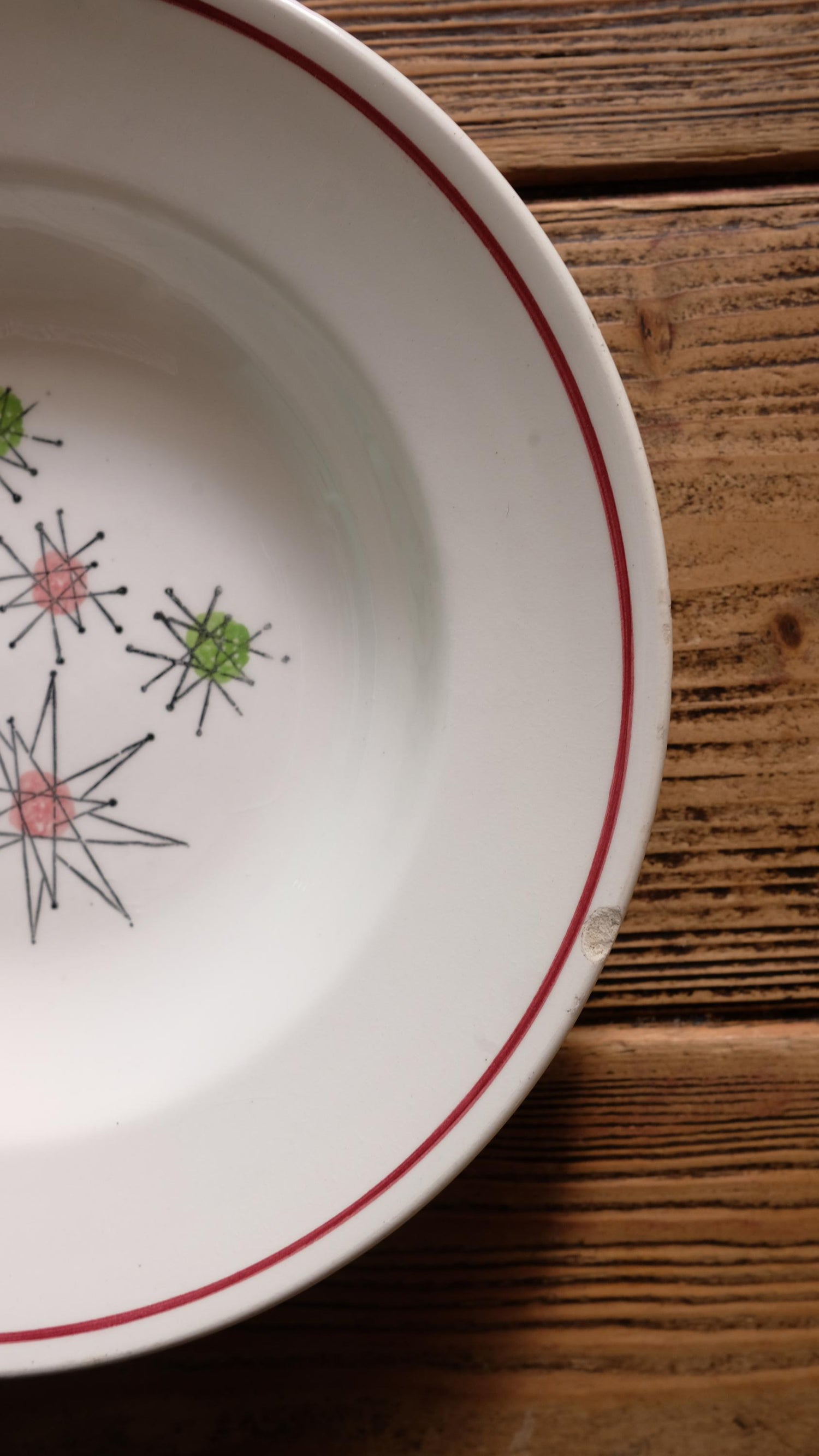 Lot de trois assiettes creuses vintage Gien Marie Claude, style Starbust en bon si ce n'est un choc sur le bord de l'une des assiettes (visible en photo).
