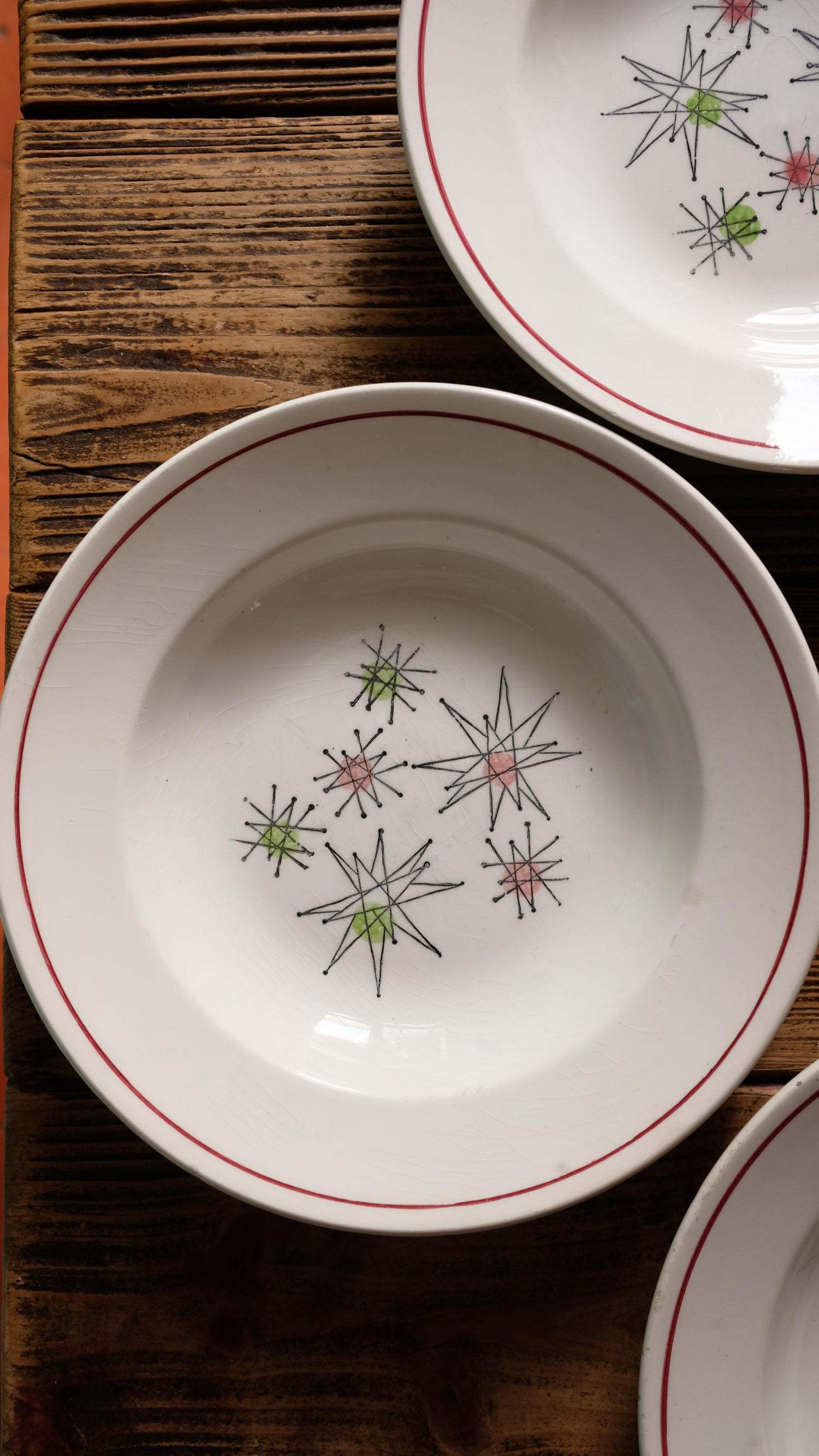 Lot de trois assiettes creuses vintage Gien Marie Claude, style Starbust