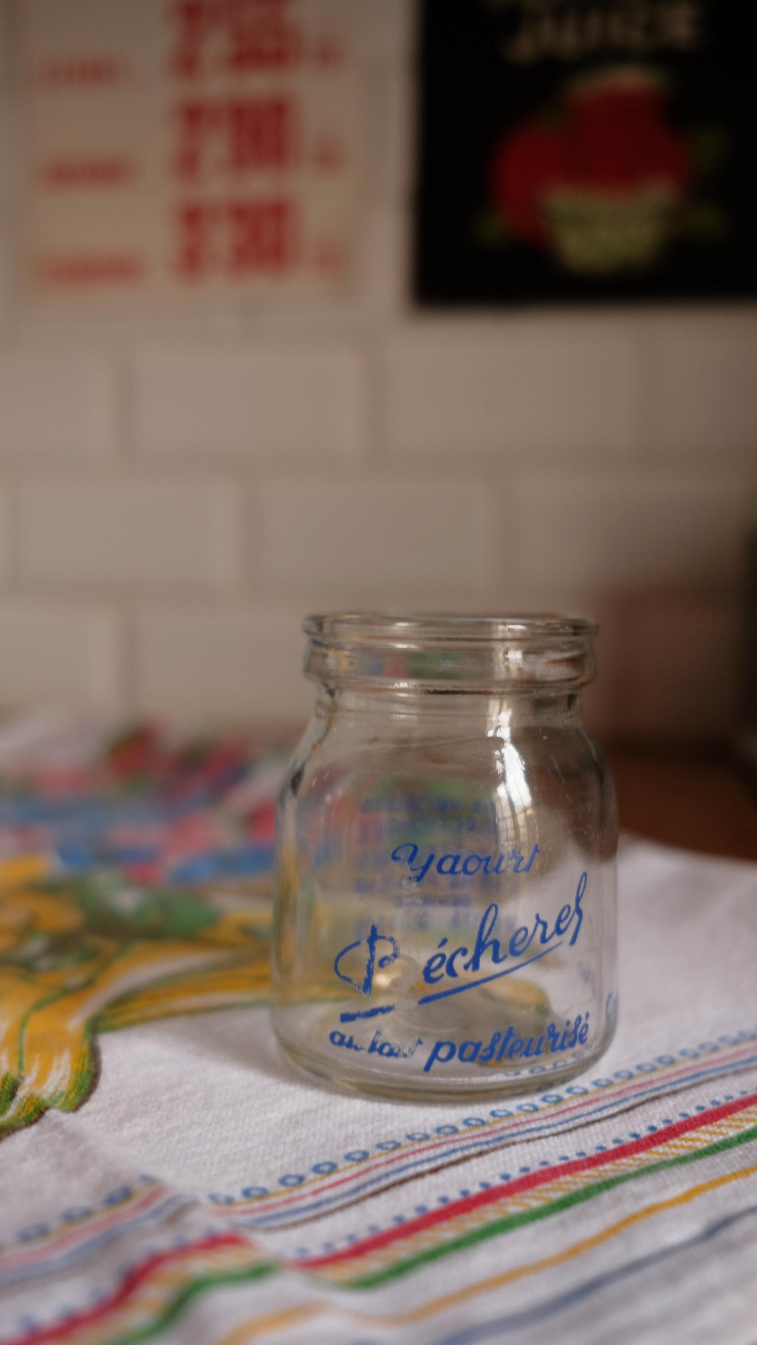 Lot de trois pot de yahourts en verre Bécherel vintage