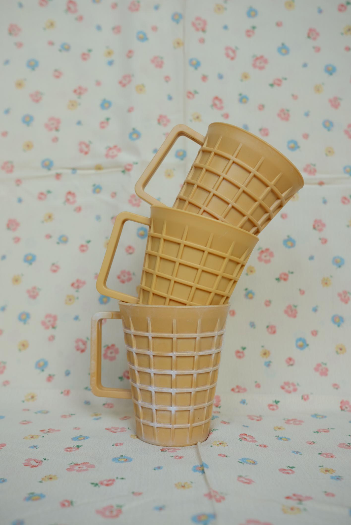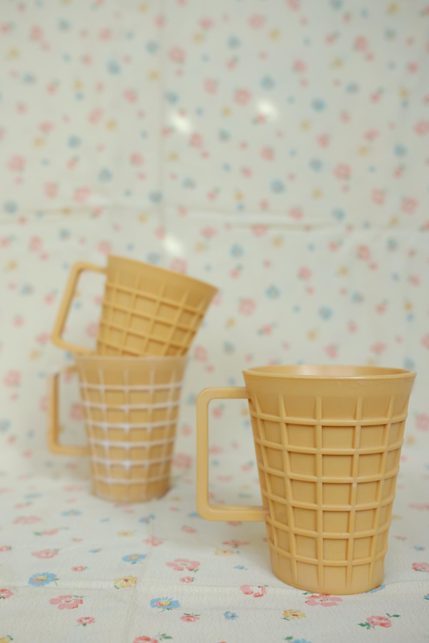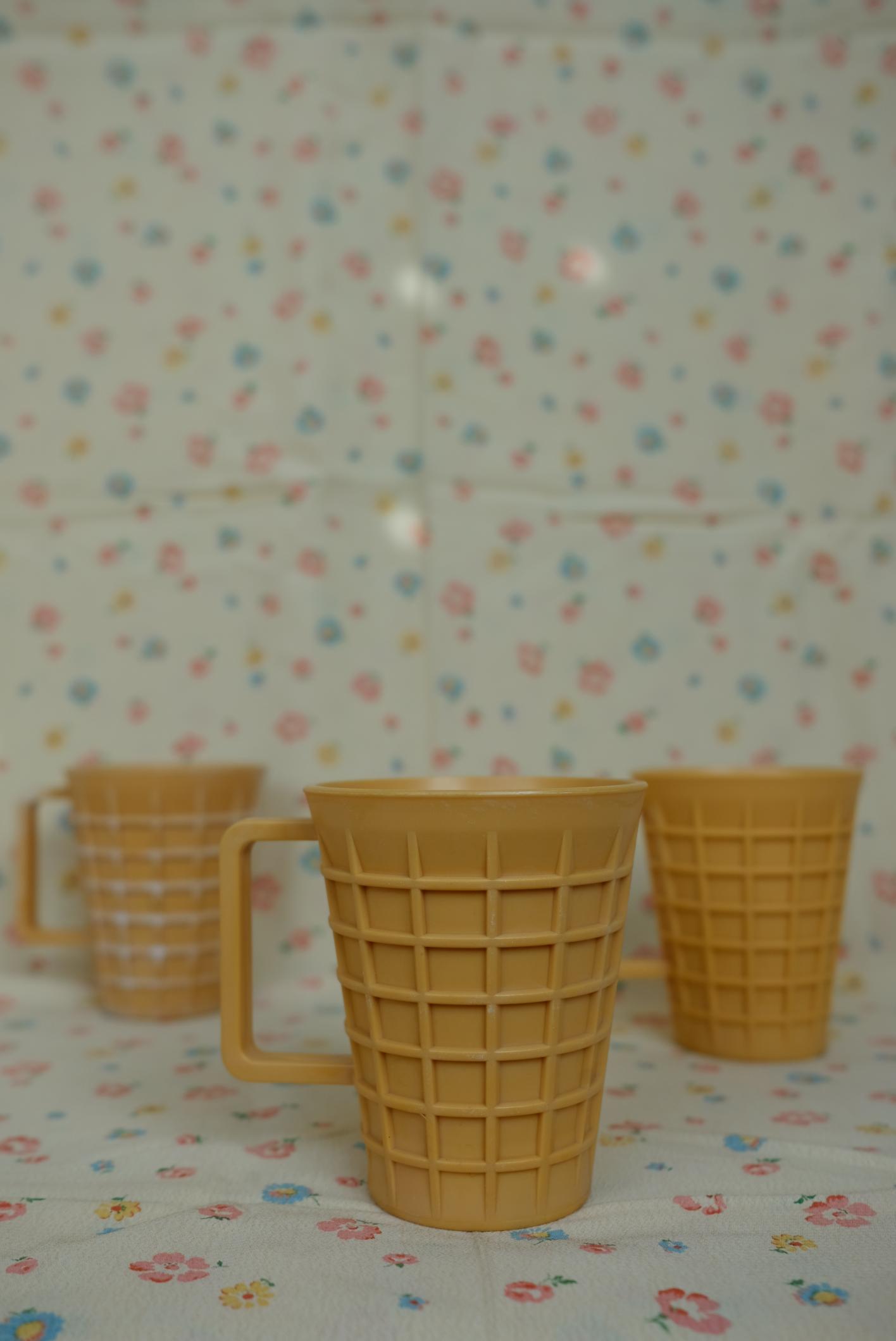 Lot de trois tasses publicitaires Déka en forme de cornet de glaces
