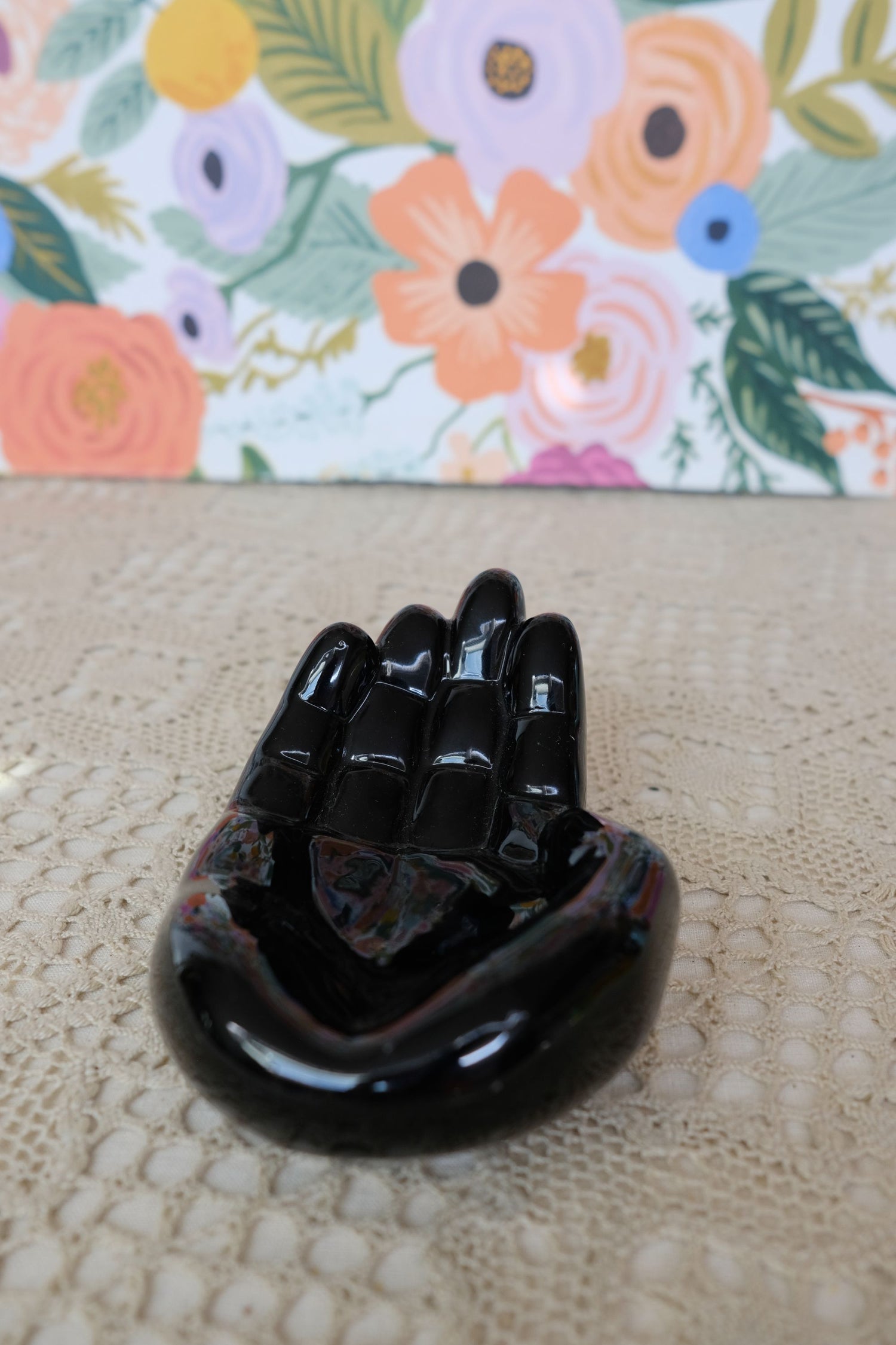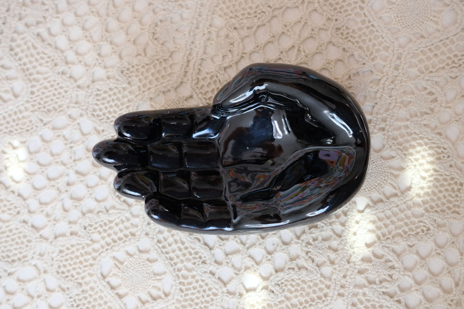 Main décorative à poser en céramique , elle est nickel et mesure 14 cm de long.