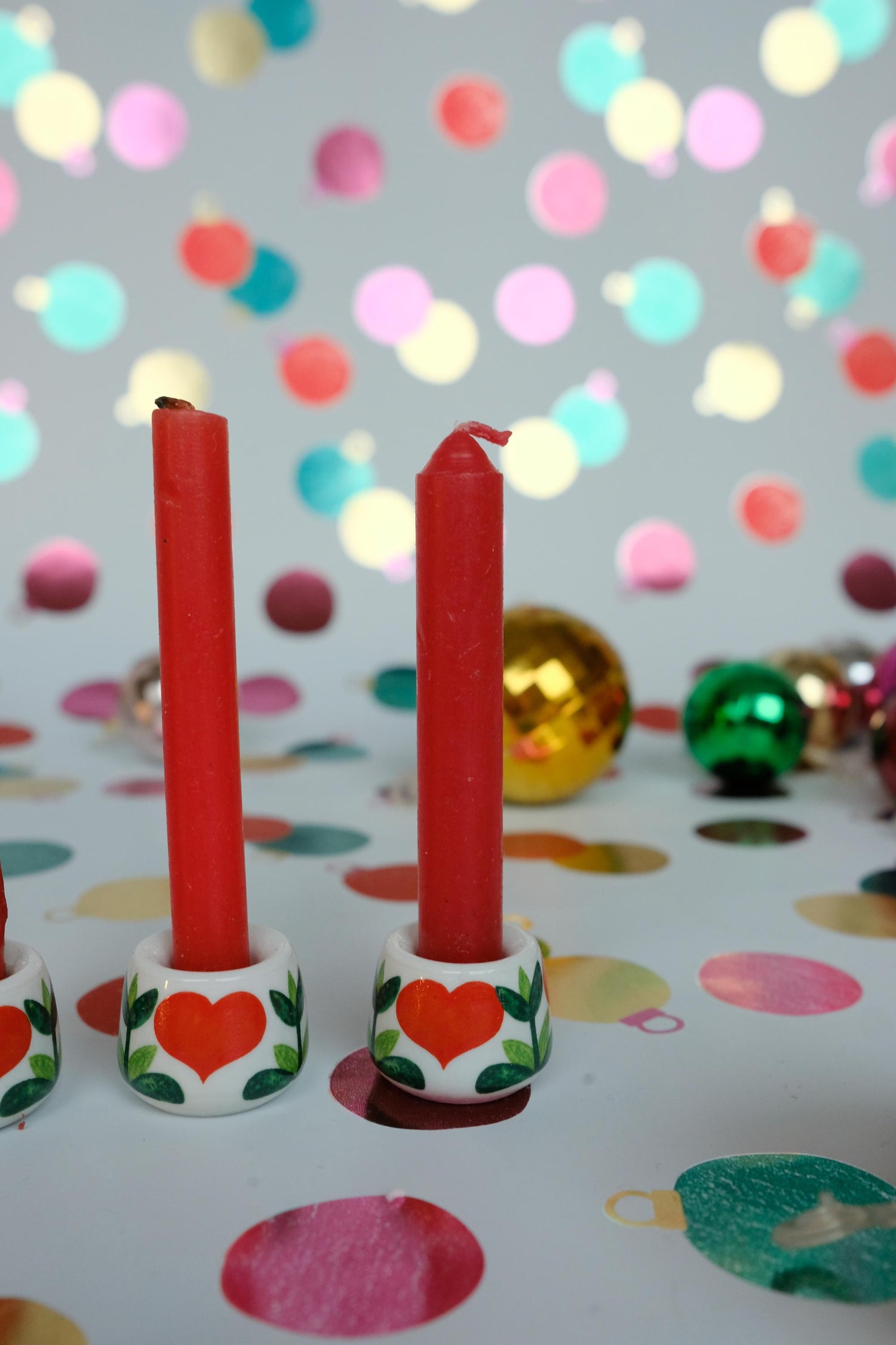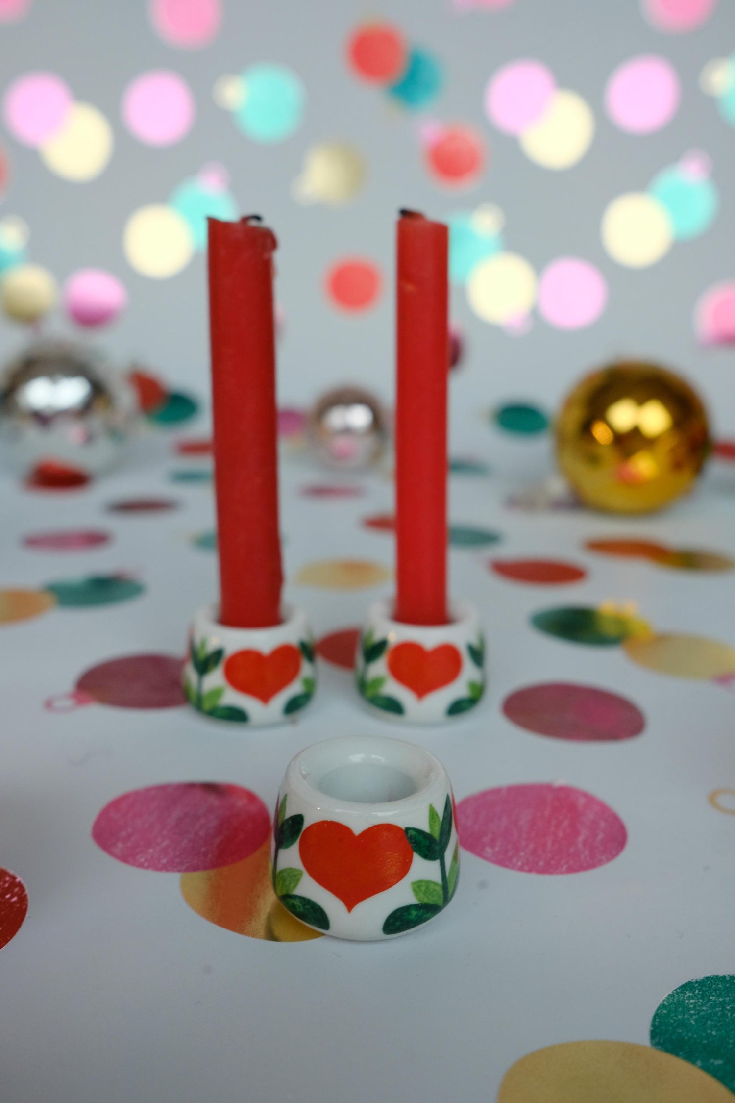 Mini bougeoirs en céramique, ils sont vendus par paire, chacun est accompagné d'une bougie.