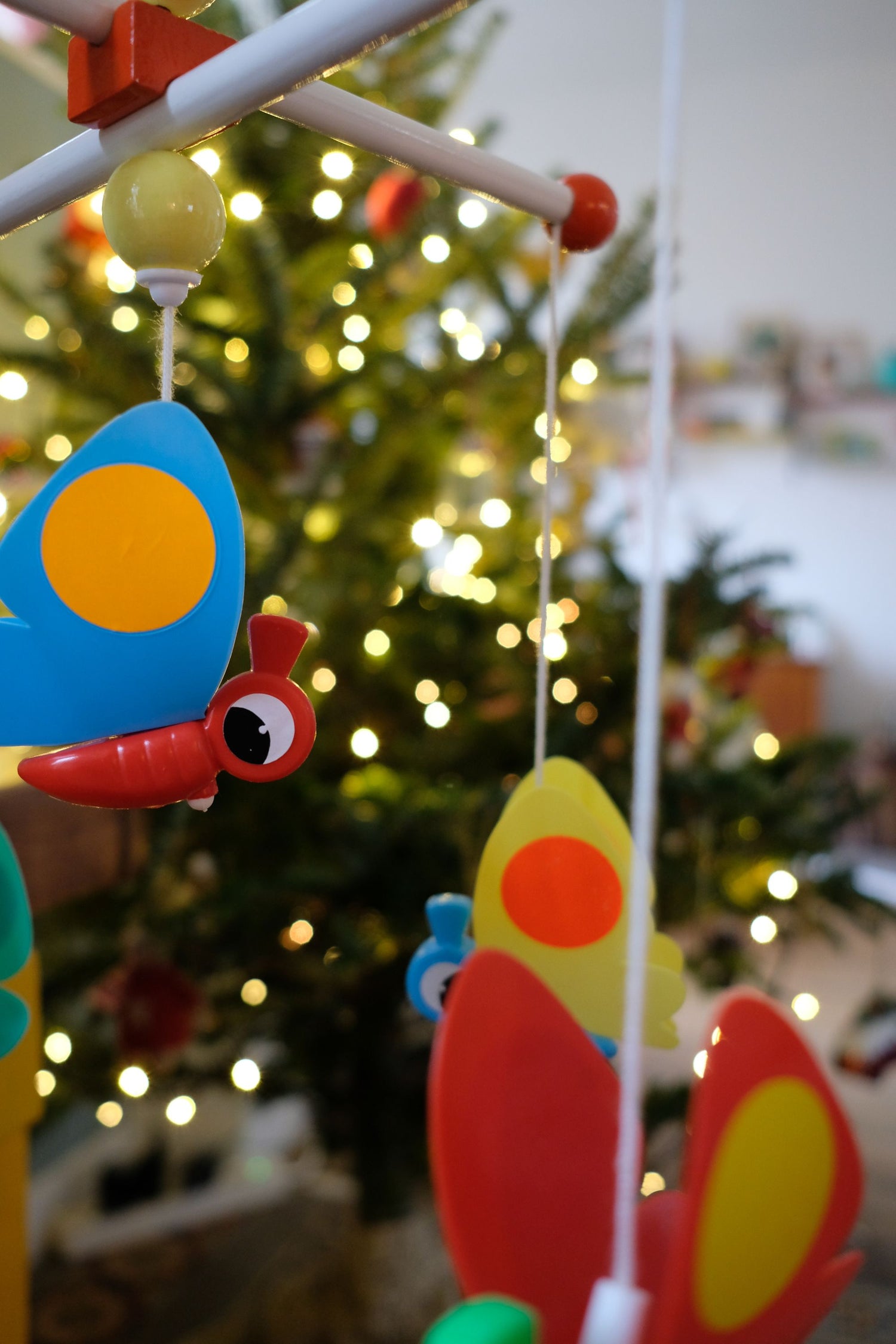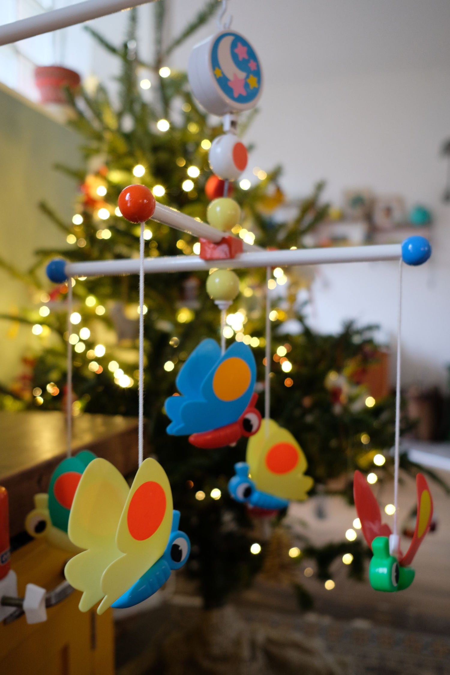 Mobile éducalux en excellent état si ce n'est quelques gommettes abimées sur les ailes des papillons.