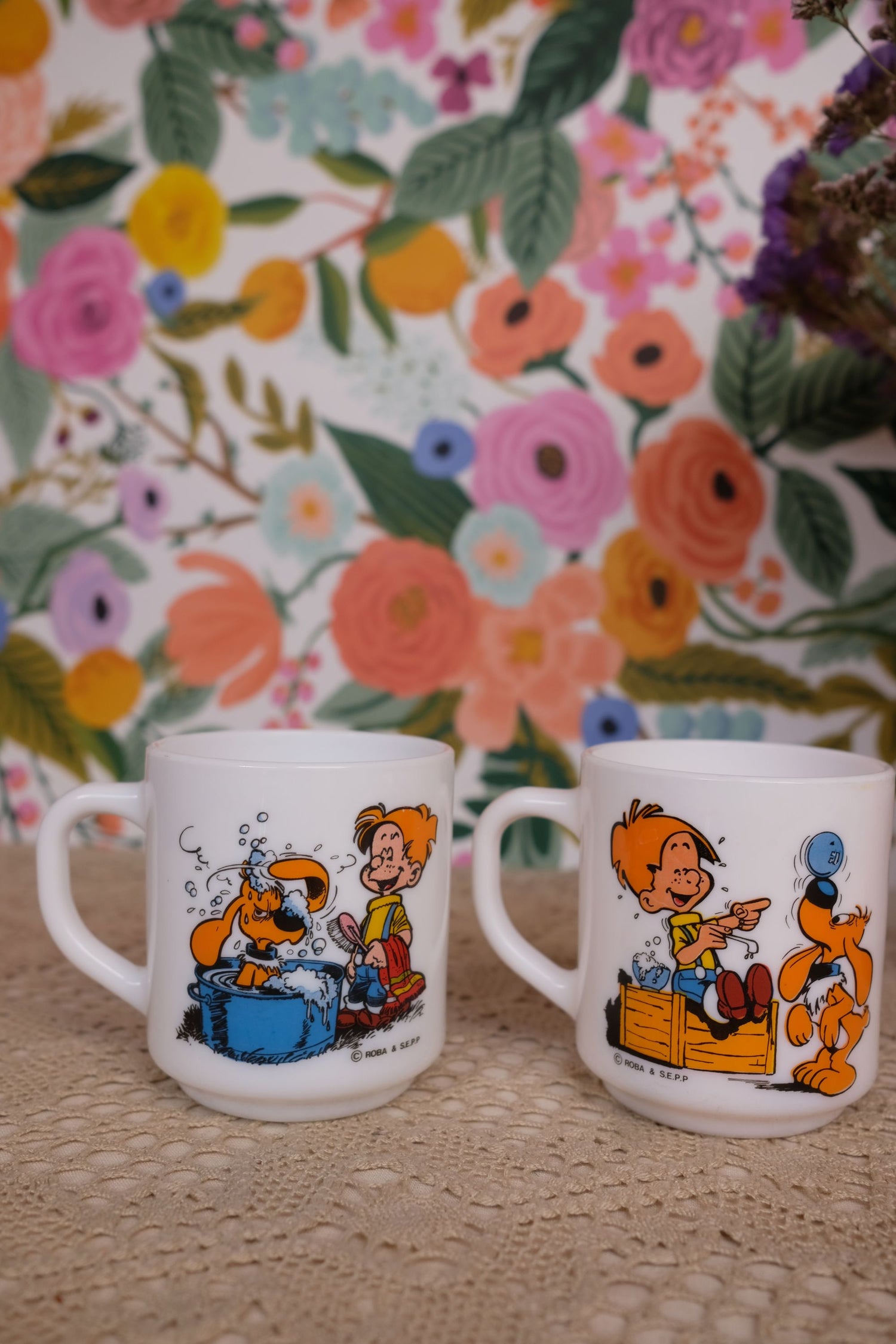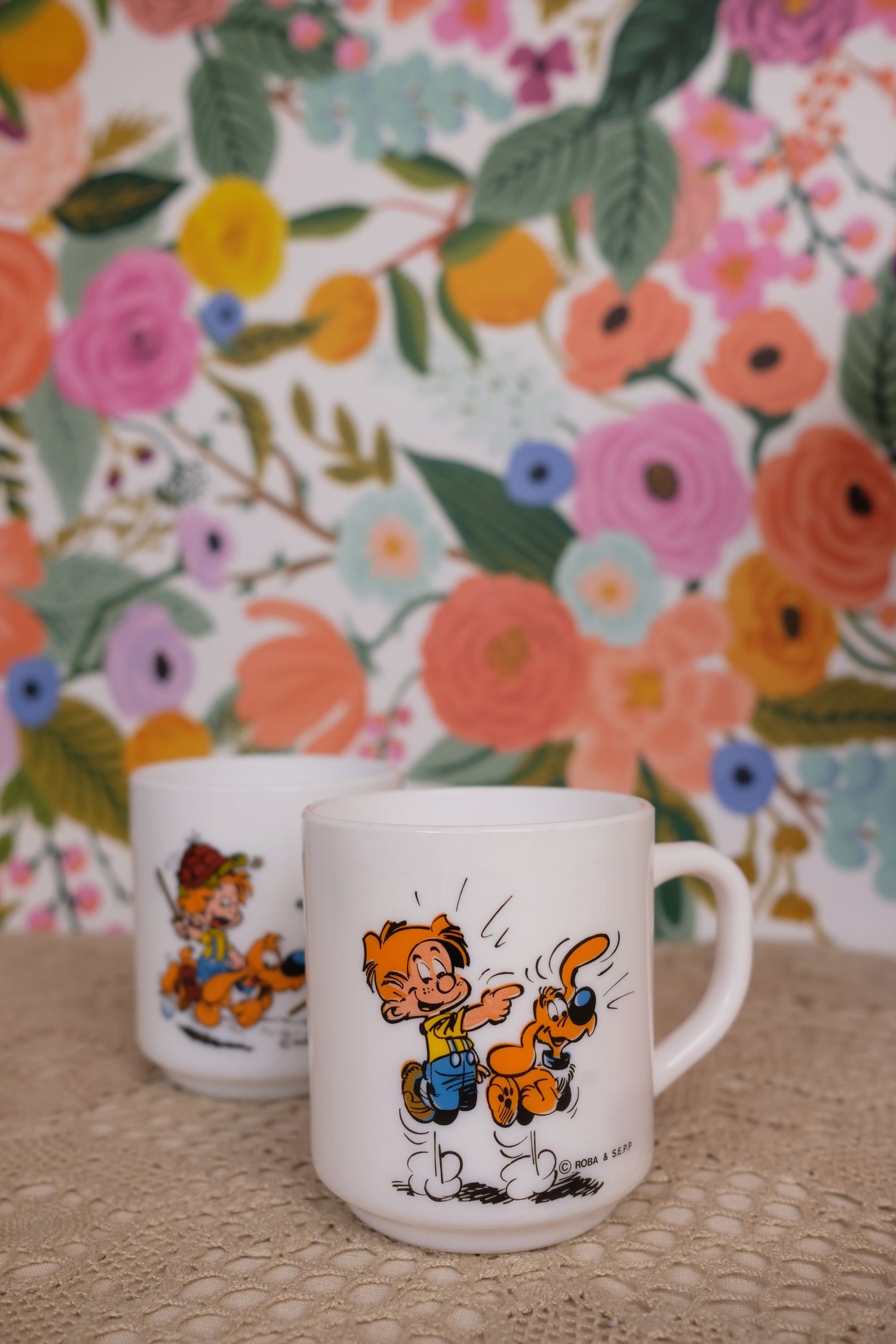 Lot de deux mugs boule et bill en arcopal en très bon état.