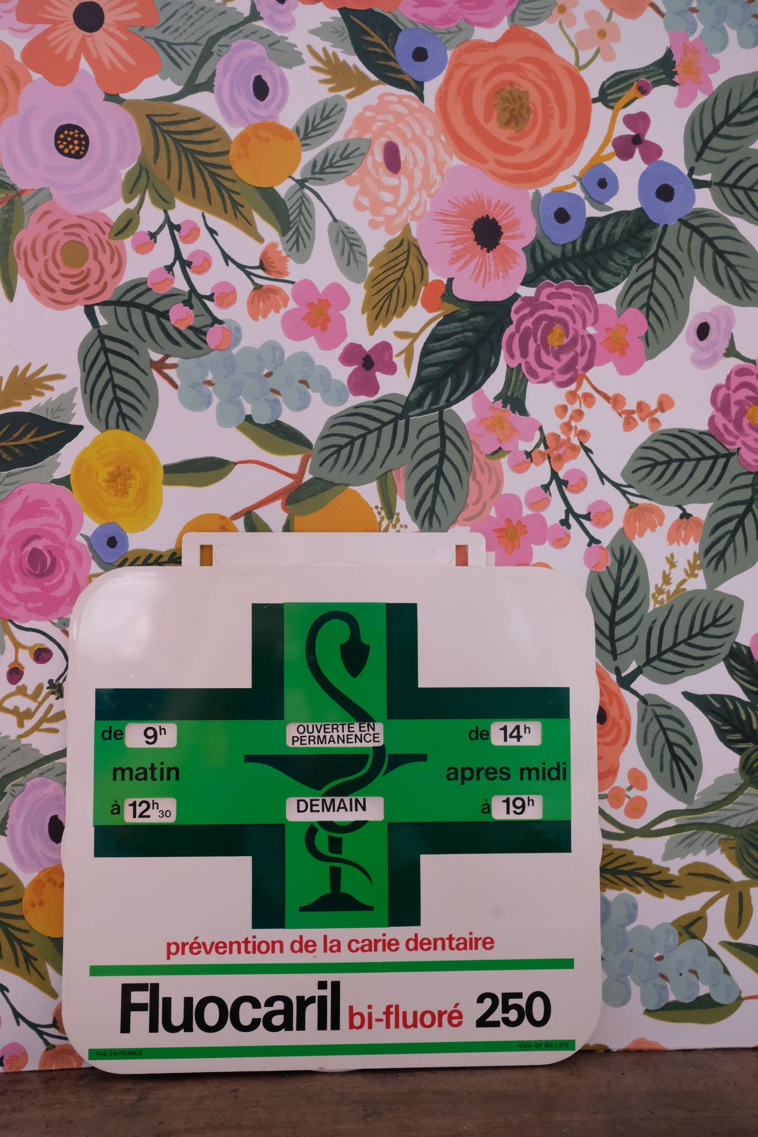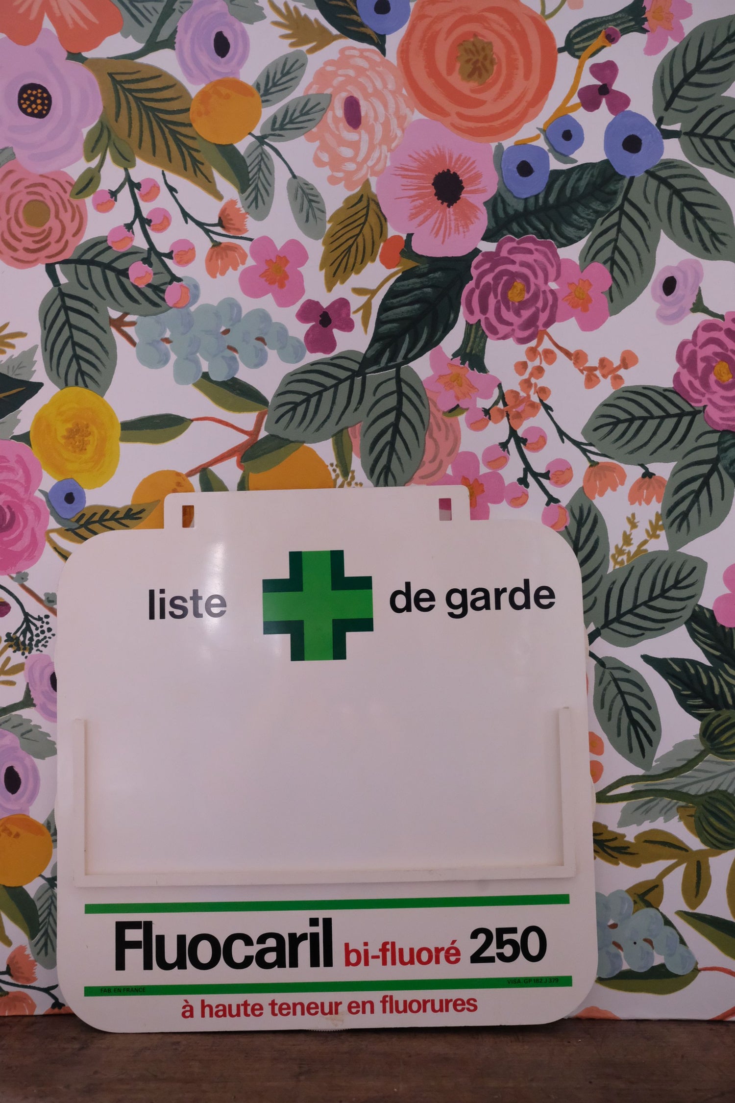 Panneau de porte de pharmacie Fluocaril, il mesure 28.5x26.5.