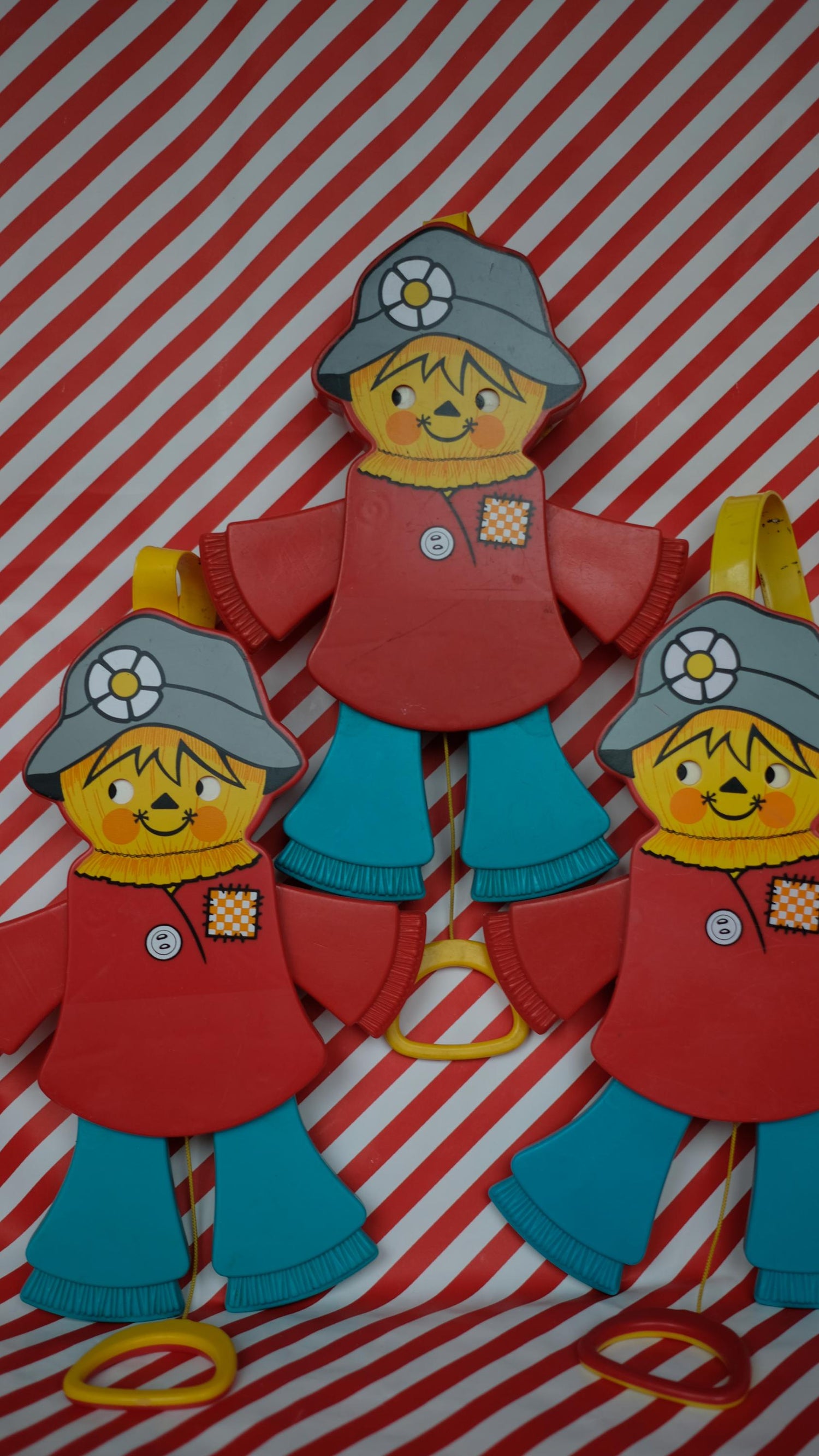 Pantin fisher price, il fait pouet quand on tire sur le fil. Ils sont vendus à l'unité.
