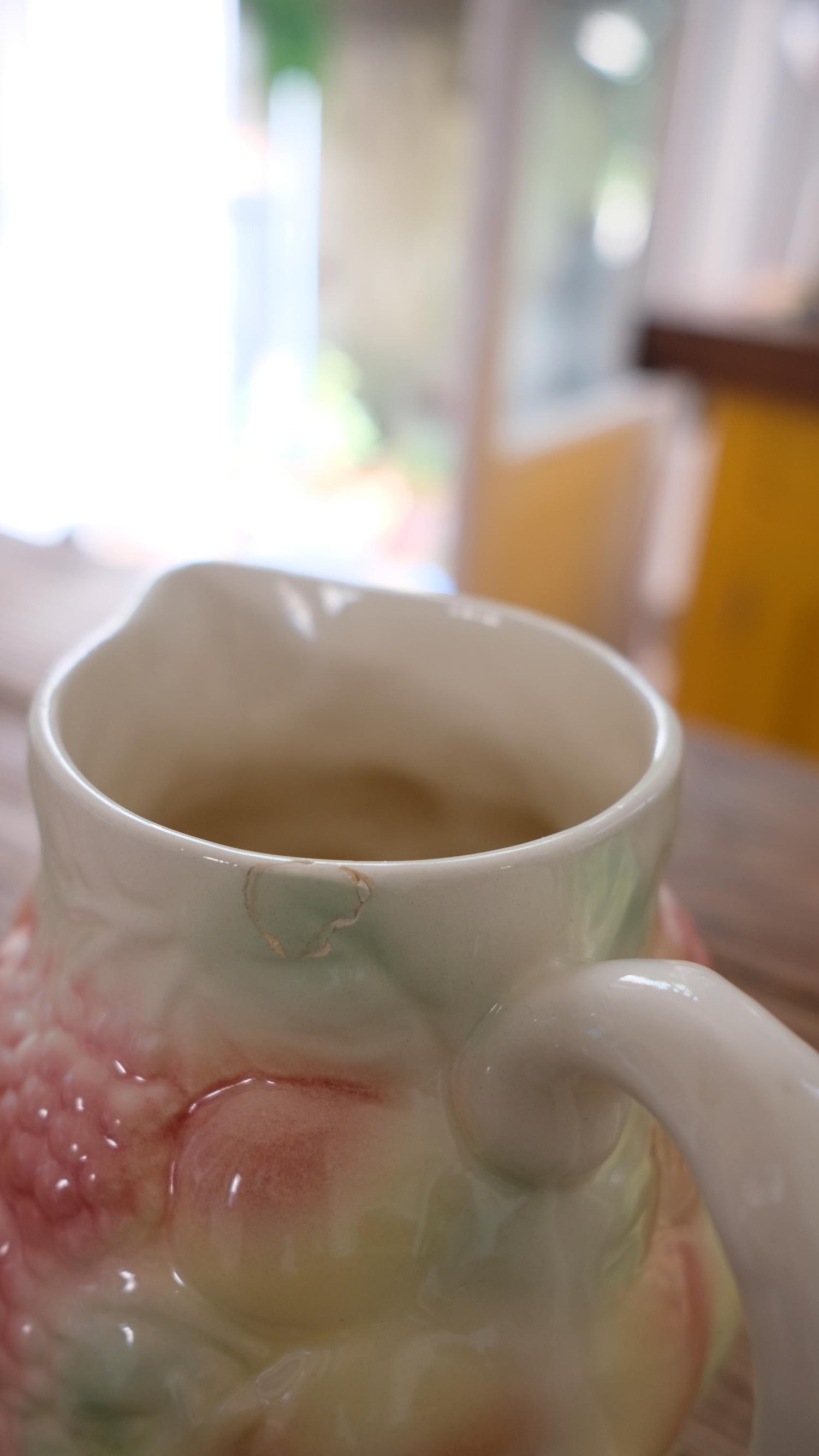Pichet Luneville en barbotine, il est en bon état si ce n'est le défaut visible sur la troisième photo.