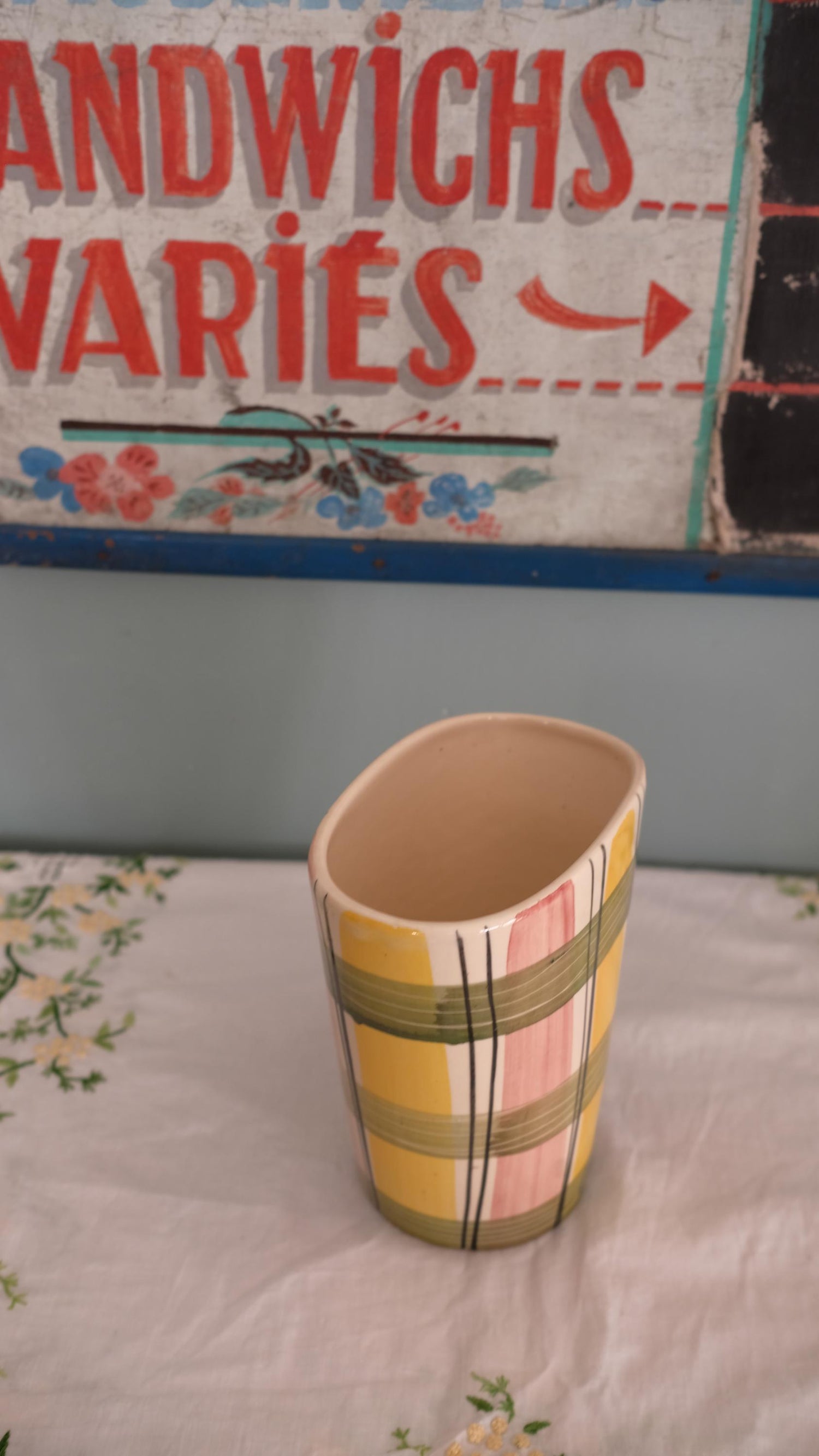 Vase en céramique motif carreaux, années 50. Il est en bon état.